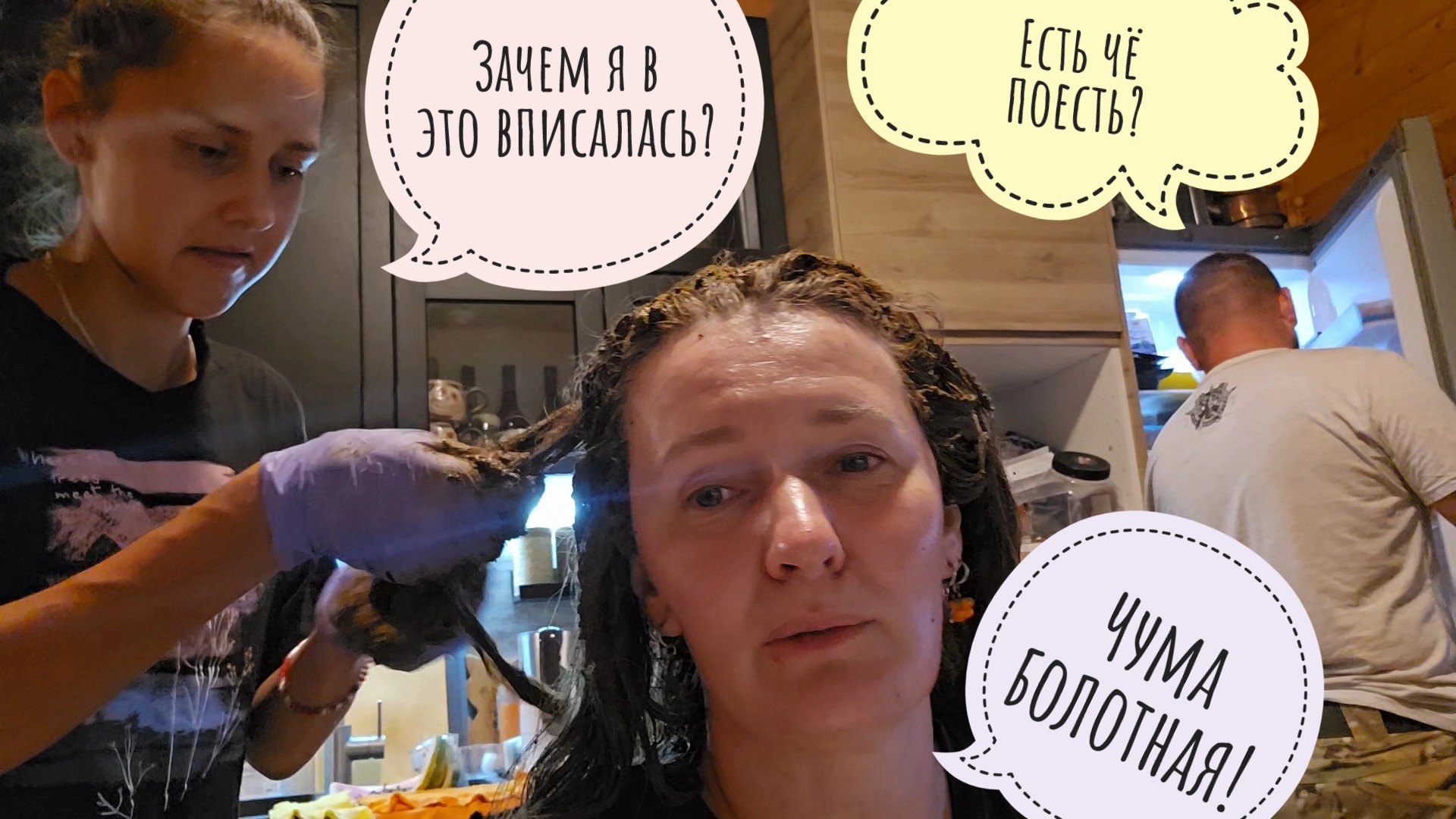 Это видео не рекомендуется к просмотру за принятием пищи. Вдруг пища не примется! Я на стриме говорила, что волосы обычно крашу хной, но делаю это в одиночестве или только с сестрой, которая мне помогает. Главное, чтобы этот ужас и позор не увидел кто-то ещё. Но тут Артём спросил, чего я не крашусь, а сестра брата Егора Маша услышала и тоже спросила. Потом сказала, что она умеет красить волосы и вообще готова помочь. А у меня уже два года лежит мешок с то ли иранской, то ли индийской хной прямо оттуда. На улице шёл дождь, делать было нечего, Артёма выгнать из дома не получилось. В итоге, он всё видел. Ну и вы теперь тоже, чего уж скрывать. Представляете, как всё это обмазывать получается в одиночку?