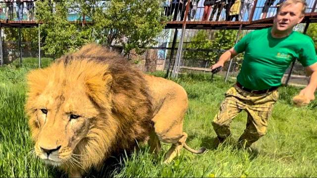 Олег Зубков РАСЧЕСЫВАЛ ГРИВЫ своим львам, но один лев решил меня прогнать и ПОШЕЛ НА МЕНЯ….