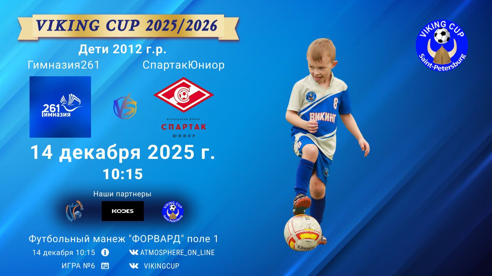 VIKING CUP среди команд 2012 г.р. (U13), Поле 1 14 декабря 2025 САНКТ-ПЕТЕРБУРГ, ФЦ "Форвард" ФК "Гимназия261" - ФК "СпартакЮниор"/VIKING CUP, Игра №6, 14-12-2025 10:15
