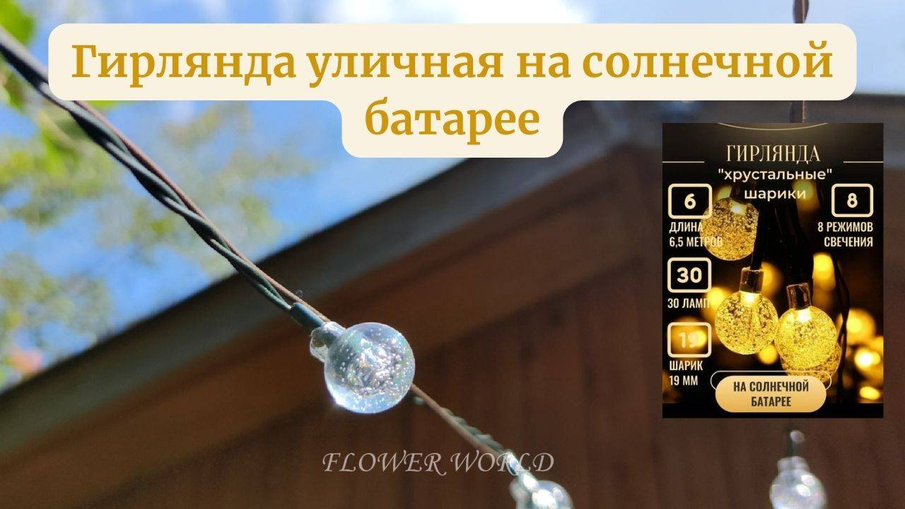 Заказать Гирлянду на солнечной батарее - https://ya.cc/m/dRjllZH?erid=5jtCeReNx12oajodcMLh6ND Артикул товара - 102443549311 Пила цепная аккумуляторная Huter - https://ya.cc/m/Fl2Erdx?erid=5jtCeReNx12oajodcMLh6ND Артикул товара - 102388689159 Гирлянду на солнечной батарее пчелка - https://ya.cc/m/MdxU0fs?erid=5jtCeReNx12oajodcMLh6ND Артикул товара - 101901831870 Уличные садовые гирлянды на солнечных батарейках длиной 7 м метров с 50 шариками со светящимися светодиодными led лампочками подходят для украшения дома и сада. Можно разместить на окне на шторах, на балконе для декорирования интерьера или в саду на дереве. Необходимо следить, чтобы солнечная панель была доступна для солнца и солнечных лучей. Подойдет для декоративного новогоднего освещения уличной елки, так как водонепроницаемая и морозоустойчивая. Светит теплым белым светом. Работает без использования электричества - удобна для дачи, дачной беседки или забора. Переходите на канал на других платформах. BOOSTY:https://boosty.to/flowerworld Яндекс ДЗЕН:https://dzen.ru/flworld Видео платформа Nuum: https://nuum.ru/channel/flowerworld ОК: https://ok.ru/flowerworld ВКонтакте: https://vk.com/public202723953 ТЕЛЕГРАМ: https://t.me/FlowerWorld24 RUTUBE: https://rutube.ru/channel/23502939/ YOUTUBE: https://youtube.com/@FlowerWorldDAN Matreshka.tv: https://matreshka.tv/channel/4QIgCdKr-uk ЦВЕТЫ, СЕМЕНА, САЖЕНЦЫ 😮 - https://fas.st/QJYeoz и здесь https://fas.st/r4MISN?erid=LatgC6tbD Препараты и удобрения - https://fas.st/HoxODG #гирлянда #светодиоднаягирлянда #гирлянданасолнечнойбатарее #алиэкспресс #солнечнаябатарея #китай #гирляндассолнечнойпанелью #гирлянда #светодиоднаягирлянда #гирлянданасолнечнойбатарее #алиэкспресс #солнечнаябатарея #китай #гирляндассолнечнойпанелью