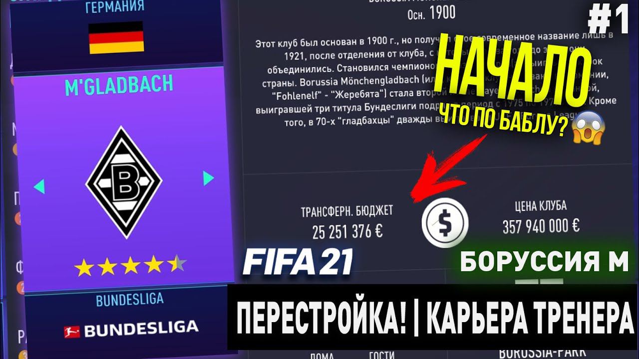 ПЕРЕСТРОЙКА | БОРУССИЯ М | FIFA 21 | КАРЬЕРА ТРЕНЕРА | ЧАСТЬ 1