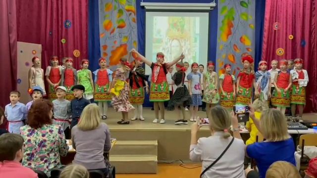 София Петруха в центре. Танец матрешек. Город Киров, пос. Радужный, школа 74, 3б класс, лицей