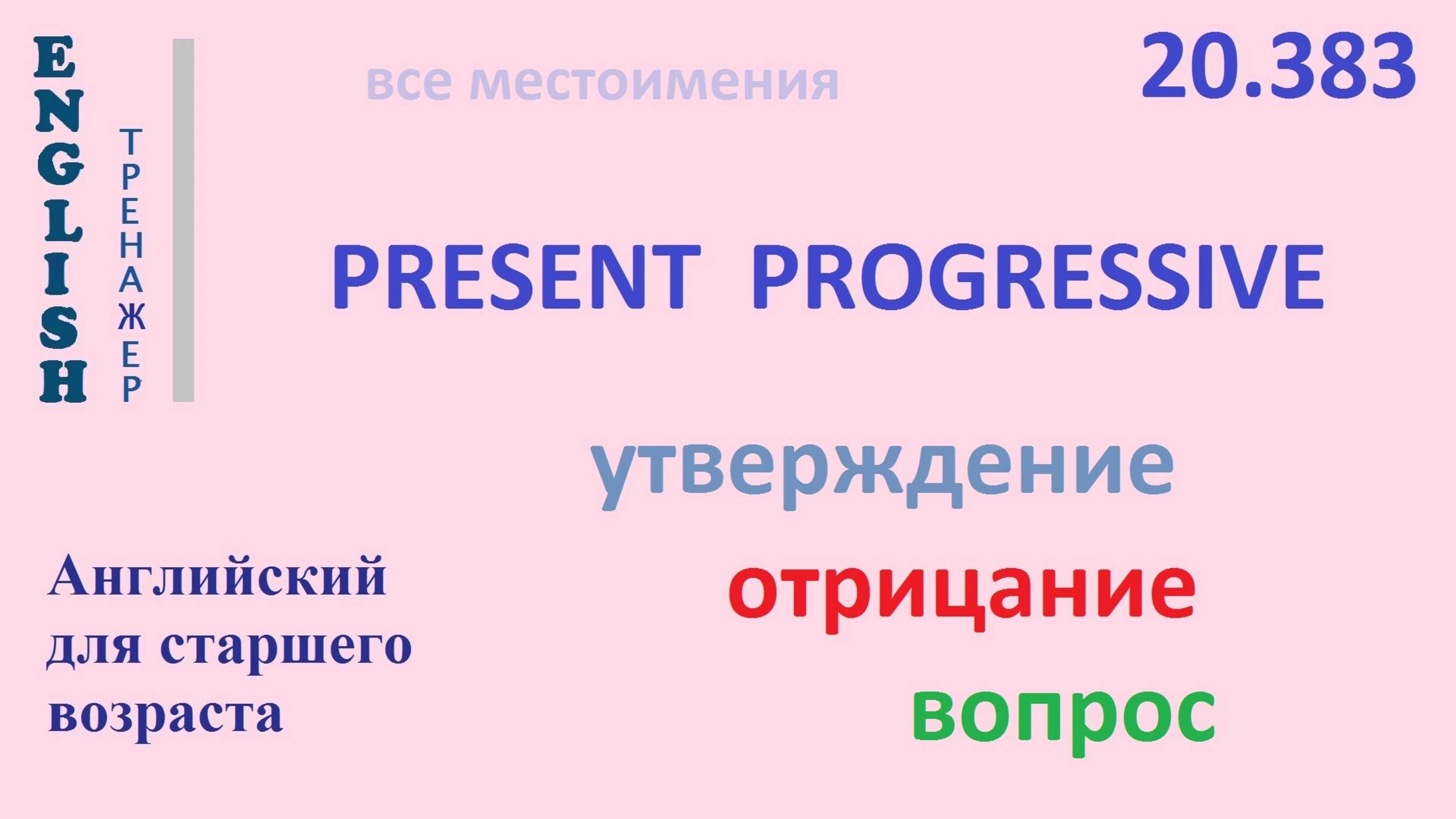 Английский ТРЕНАЖЕР 20.383 Present Progressive I he she you we they утверждение отрицание вопрос
