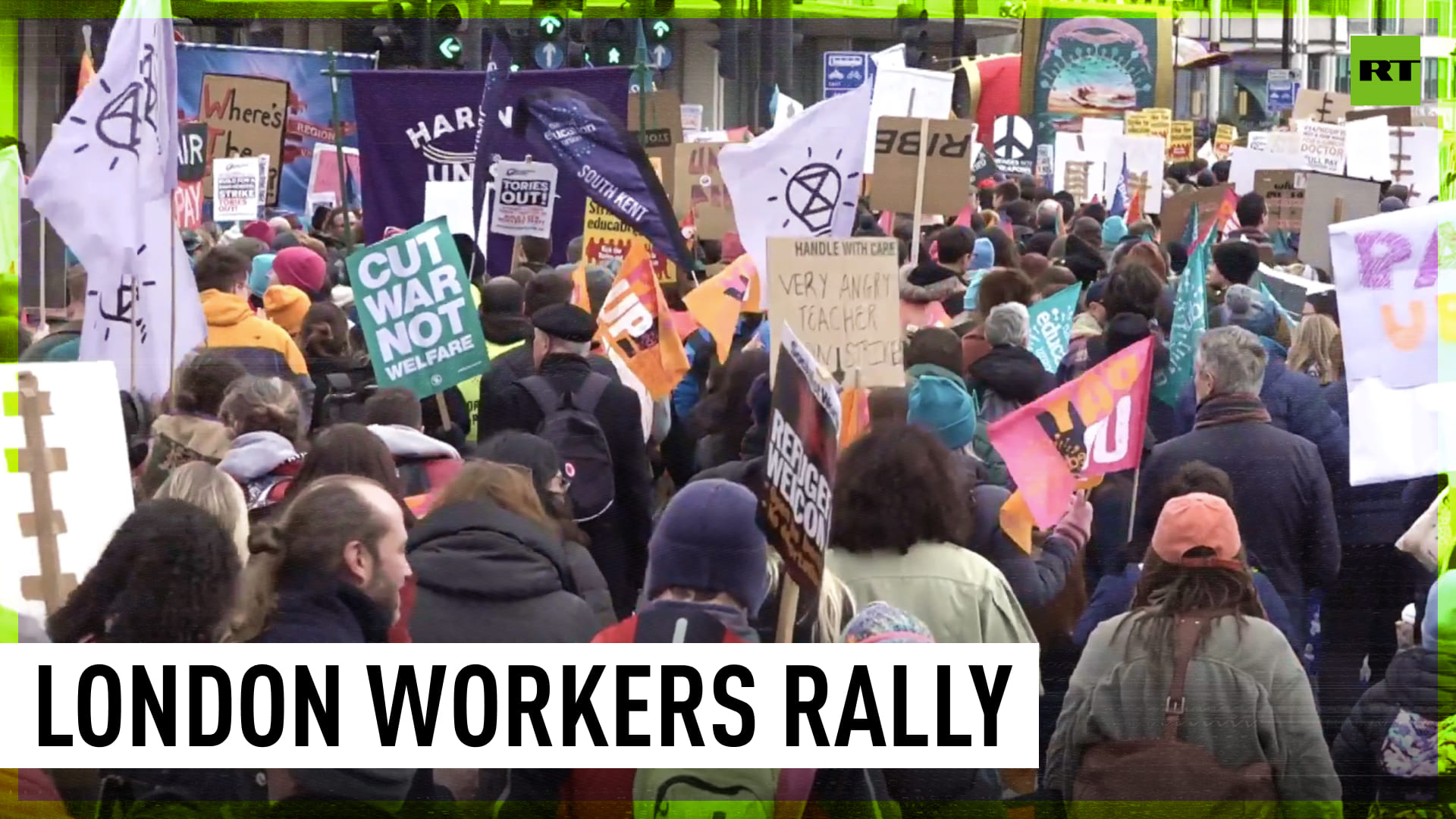 Thousands of UK public sector workers, including teachers and doctors, gathered in central London demanding better pay and working conditions. ---------------------------------------------------------------------------------------- Freedom over censorship, truth over narrative. Follow us on Facebook: https://www.facebook.com/RTnews Follow us on Telegram: https://t.me/rtnews Follow us on Twitter: https://twitter.com/RT_com