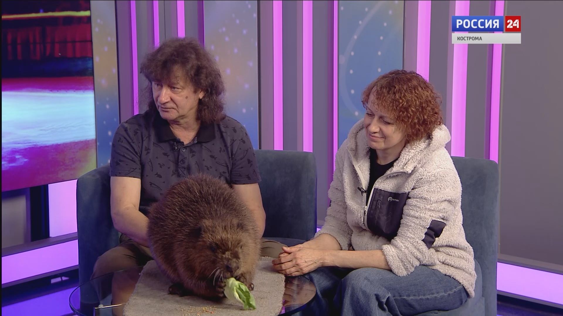 Нашу студию навестили необычные гости. Проездом в Костроме человек, вписавший себя в историю мирового цирка и в книгу рекордов Гиннесса – Виктор Сильченко. Виктор Анатольевич – единственный в мире дрессировщик, который работает с бобрами. Вместе с ним супруга Татьяна и один, точнее, одна из труппы полуводных грызунов, бобёр Фрося.