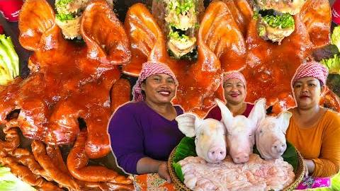 Рецепт рагу из свиной головы и кишок, а также супа из свиных костей. Очень вкусно. Pig Head and intestines Stew Recipe and Pork Bones Soup Delicious Cooking.