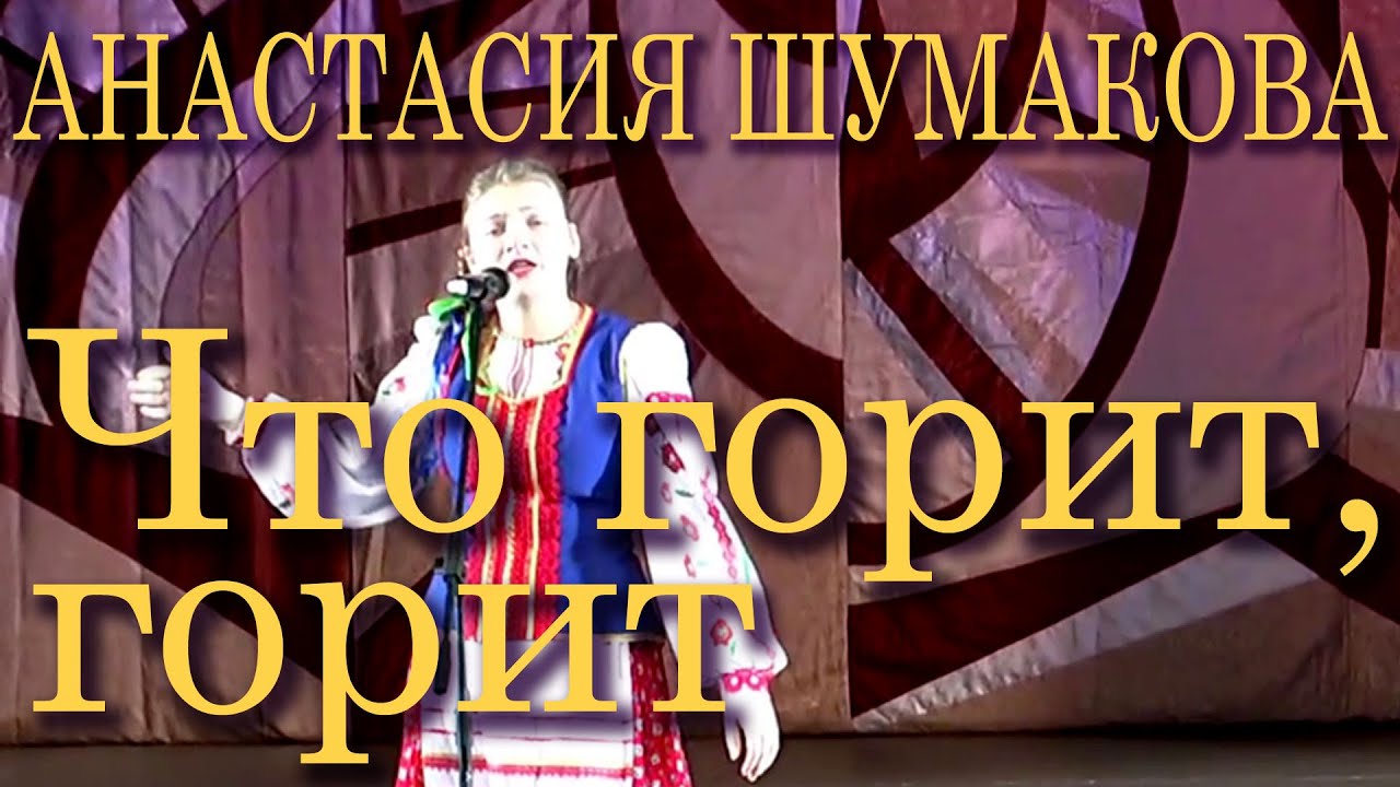 Анастасия Шумакова. «Что горит, горит» (русская народная лирическая песня). Фрагмент XII открытого всероссийского фестиваля-конкурса детского и юношеского творчества «Золотая ладья-2015» (Великий Новгород, 9 января 2015 года). Анастасия Шумакова - воспитанница краснодарской детской школы искусств № 5 имени В.Д.Пономарёва, участница образцового ансамбля народной песни «Потешки». Руководитель ансамбля Татьяна Криницкая, концертмейстер Владимир Левченко. Видеосъёмка концерта: сайт «Ретропортал» https://www.retroportal.ru