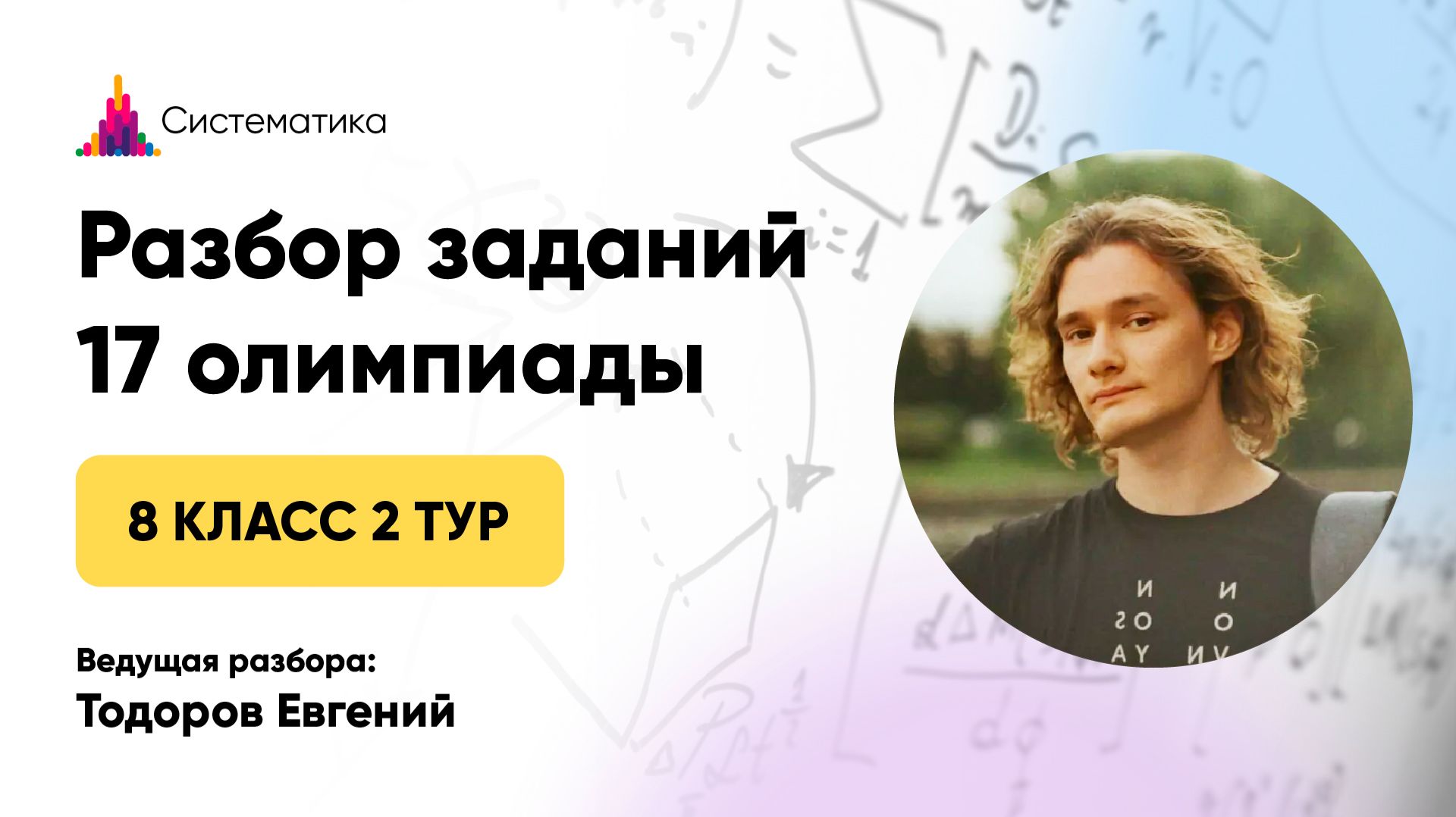 Разбор задач 2 тура 17 олимпиады по математике для 8 класса Записаться на очередную олимпиаду — https://systematika.org/olimpiada/math/ Онлайн-занятия в мини-группах По одному абонементу можно заниматься сразу в нескольких кружках. Олимпиадная математика для 1–9 классов — https://systematika.org/online-courses/live-math/ Шахматы для 1–9 классов — https://systematika.org/online-courses/chess/ ТРИЗ для 1–7 классов — https://systematika.org/online-courses/triz/ Биология для 3–7 классов — https://systematika.org/online-courses/biology/ Индивидуальные занятия Опытные преподаватели из лучших вузов России помогут достичь высоких результатов в обучении! Олимпиадная математика — https://systematika.org/online-courses/live-math-repetitor/ Школьная математика — https://systematika.org/online-courses/school-math-repetitor/ Шахматы — https://systematika.org/online-courses/chess-repetitor/ ТРИЗ — https://systematika.org/online-courses/triz-repetitor/ Биология — https://systematika.org/online-courses/biology-repetitor/ Химия — https://systematika.org/online-courses/chemistry-repetitor/ Физика — https://systematika.org/online-courses/physics-repetitor/ Курсы Выбирайте только те темы, которые интересны вам. Олимпиадная математика — https://systematika.org/items/matematika/ Программирование — https://systematika.org/items/programmirovanie/ Физика — https://systematika.org/items/fizika/ История — https://systematika.org/items/istoriya/ Шахматы — https://systematika.org/items/shahmaty/ Soft skills — https://systematika.org/items/soft-skills/ Более 150 курсов в записи и вживую на сайте — https://systematika.org/form/courses/