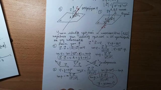 Вывод формулы для определения угла между прямой и плоскостью.