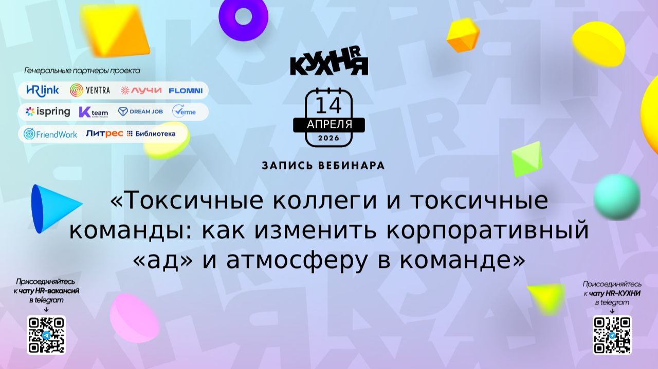 Токсичность в команде часто воспринимается как “особенности характера”. Но на практике: — после встреч у сотрудников не остаётся энергии — идеи обесцениваются и не доходят до реализации — пассивная агрессия разрушает взаимодействие — сильные сотрудники выгорают и уходят В итоге: команда тратит ресурсы не на результат, а на внутренние конфликты и напряжение. На вебинаре разобрали, как перейти от “терпим и тушим пожары” к системной работе с токсичным поведением. Благодаря записи вы: — поймёте, как отличить “сложного” сотрудника от системного токсика — разберётесь в типах токсичного поведения: «жертва», «контролер», «нарцисс» — научитесь защищать границы и гасить конфликты без эскалации — освоите техники обратной связи, которые меняют поведение, а не усиливают конфликт — получите подход к “перевоспитанию” токсичного поведения через управляемую среду 💡 Практическая часть: показали, как применять инструменты в реальных ситуациях — «психологическое айкидо» для работы с конфликтами — алгоритм DEAR MAN для отстаивания границ — модель Radical Candor и метод SBI — подход Nudge для изменения поведения через среду 🎁 Бонус: — скрипты ответов на 5 типов манипуляций — чек-лист «эмоциональной аптечки» — готовый план оздоровления атмосферы команды на 30 дней 👉 В записи — не просто теория, а готовые инструменты, которые можно применять сразу Особенность подхода — это не “борьба с людьми”, а изменение системы: 👉 от реакции на токсичность 👉 к управлению атмосферой и поведением команды И именно это позволяет не просто снижать конфликты, а повышать эффективность всей команды. Присоединяйтесь к чатам и каналам HR-КУХНИ в МАХ: HR-КУХНЯ | Ключевое HR-медиа в MAX - https://max.ru/hr_kitchen HR-КУХНЯ | Мероприятия в HR - https://max.ru/hrkitchenjournal Основной чат HR-КУХНИ - https://max.ru/join/8hmnvHea_Fk4VEPHy2fM8W54K3wcpYCv8_WDsFTLOuc Присоединяйтесь к чатам и каналам HR-КУХНИ в телеграм: - Основной чат HR-КУХНИ в телеграм - https://t.me/+tYgAH0PgPQVkOWIy - Канал HR вакансий в телеграм - https://t.me/+CMNAN2u1hjo3M2Ri - Канал HR-EVENTS в телеграм - https://t.me/hr_kitchen - Канал HR JOURNAL в телеграм - https://t.me/hrkitchenjournal Полезные ссылки: - Каталог HR решений - https://hrkitchen.ru/exhibition - График конференций, бесплатных вебинаров, а также бесплатные курсы – https://hrkitchen.ru/ - Стать спикером HR-КУХНИ - https://hrkitchen.ru/speakers - Подписаться на полезную e-mail рассылку от HR-КУХНИ (новости, гайды, чек-листы, подарки от партнеров) - https://hrkitchen.ru/subscribe