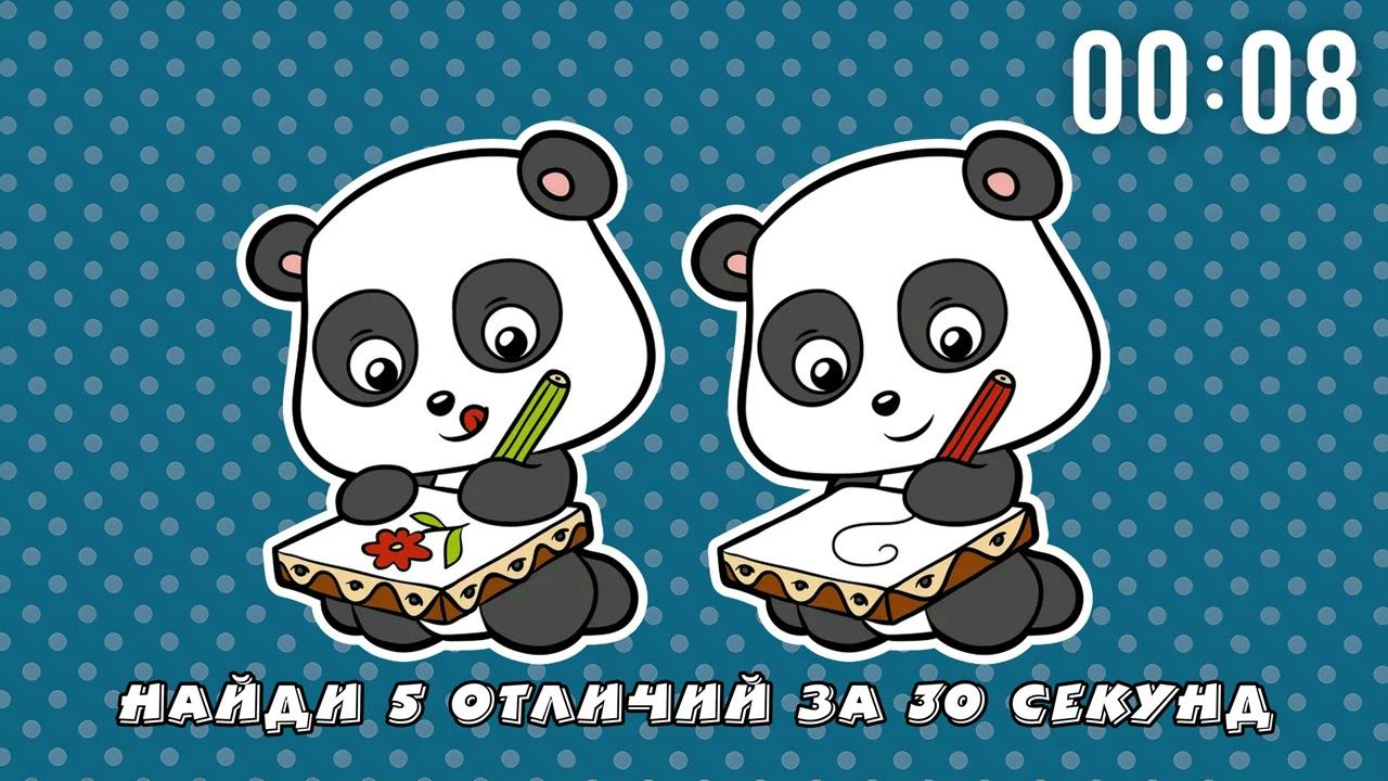 5 Отличий Панда Найти 5 отличий на двух картинках за 30 секунд. #найтиотличия #найдиотличия #искатьотличия #поискотличий #умнички #finddifferences