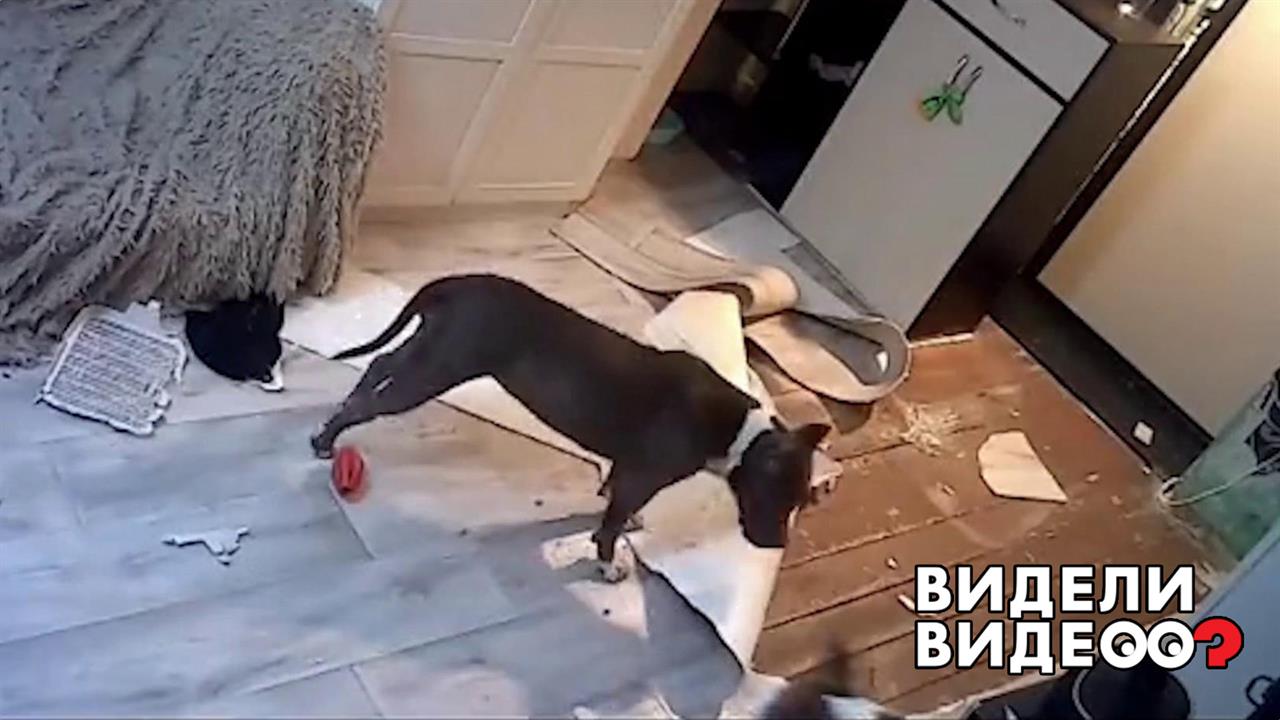 Амстаффы Харли и Бьюти демонтируют линолеум.