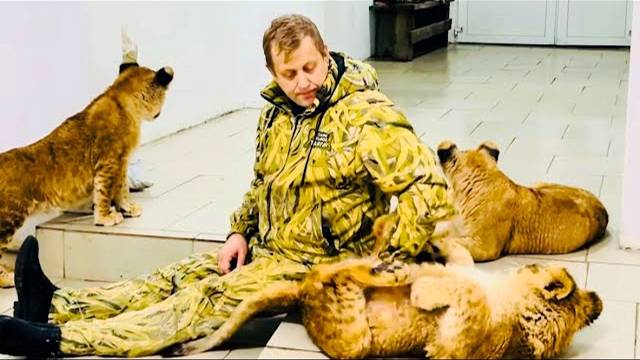 Олег Зубков поддерживает маленького львенка ШерХана пока Асада и Симба решают кто БУДЕТ ГЛАВНЫЙ!