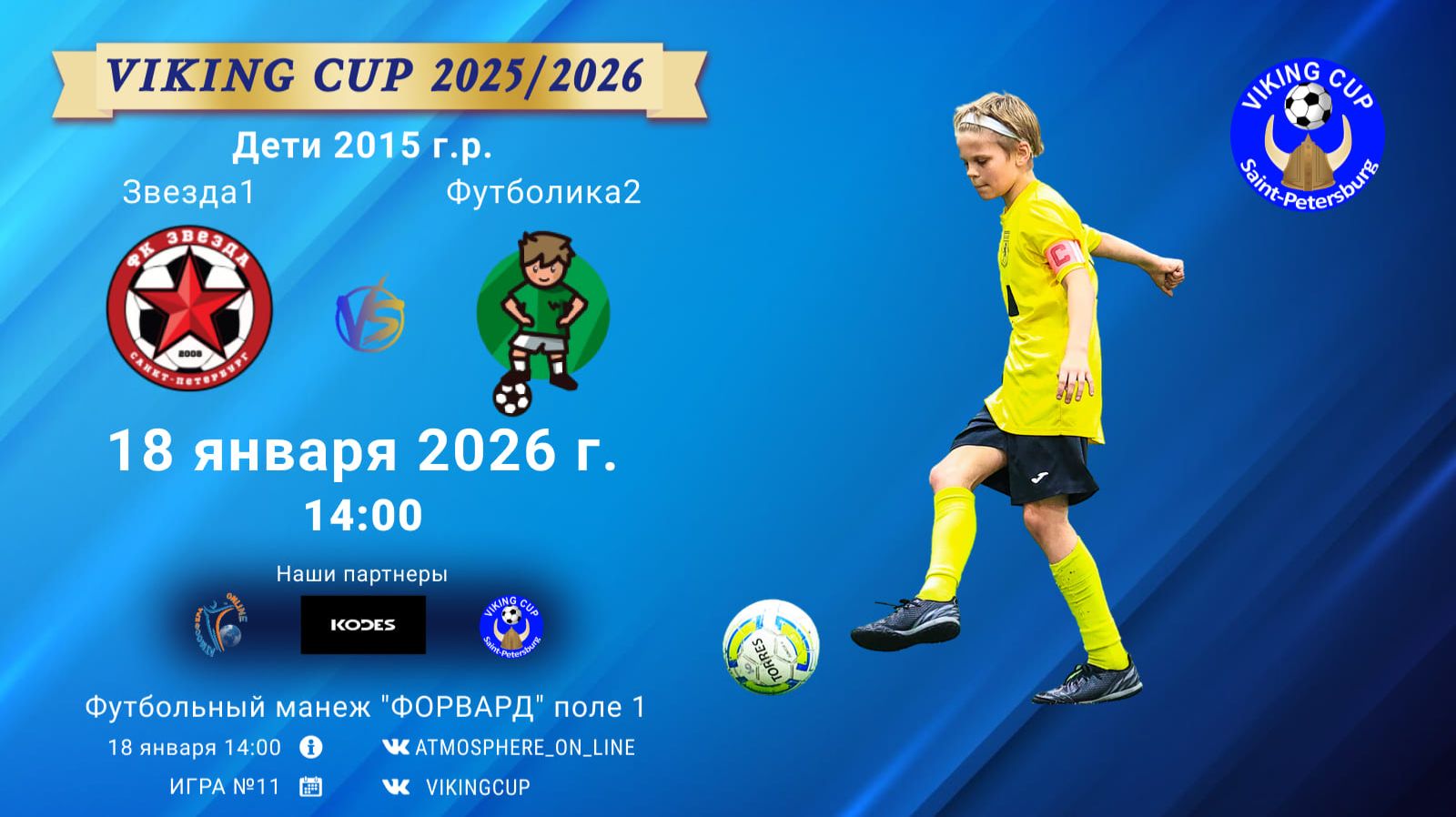VIKING CUP среди команд 2015 г.р. (U11), Поле 1 18 января 2026 САНКТ-ПЕТЕРБУРГ, ФЦ "Форвард" ФК "Звезда1" - ФК "Футболика2"/VIKING CUP, Игра №11, 18-01-2026 14:00