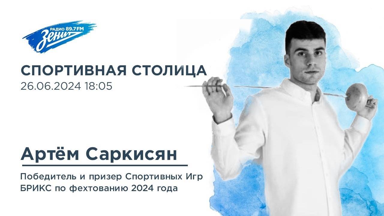 Гостем «Спортивной столицы» станет Артем Саркисян, победитель и призер Спортивных Игр БРИКС по фехтованию 2024 года.