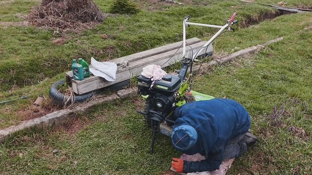 Подготовка мотоблока к посевной,обслуга и замена масла в двигателе и редукторе.,