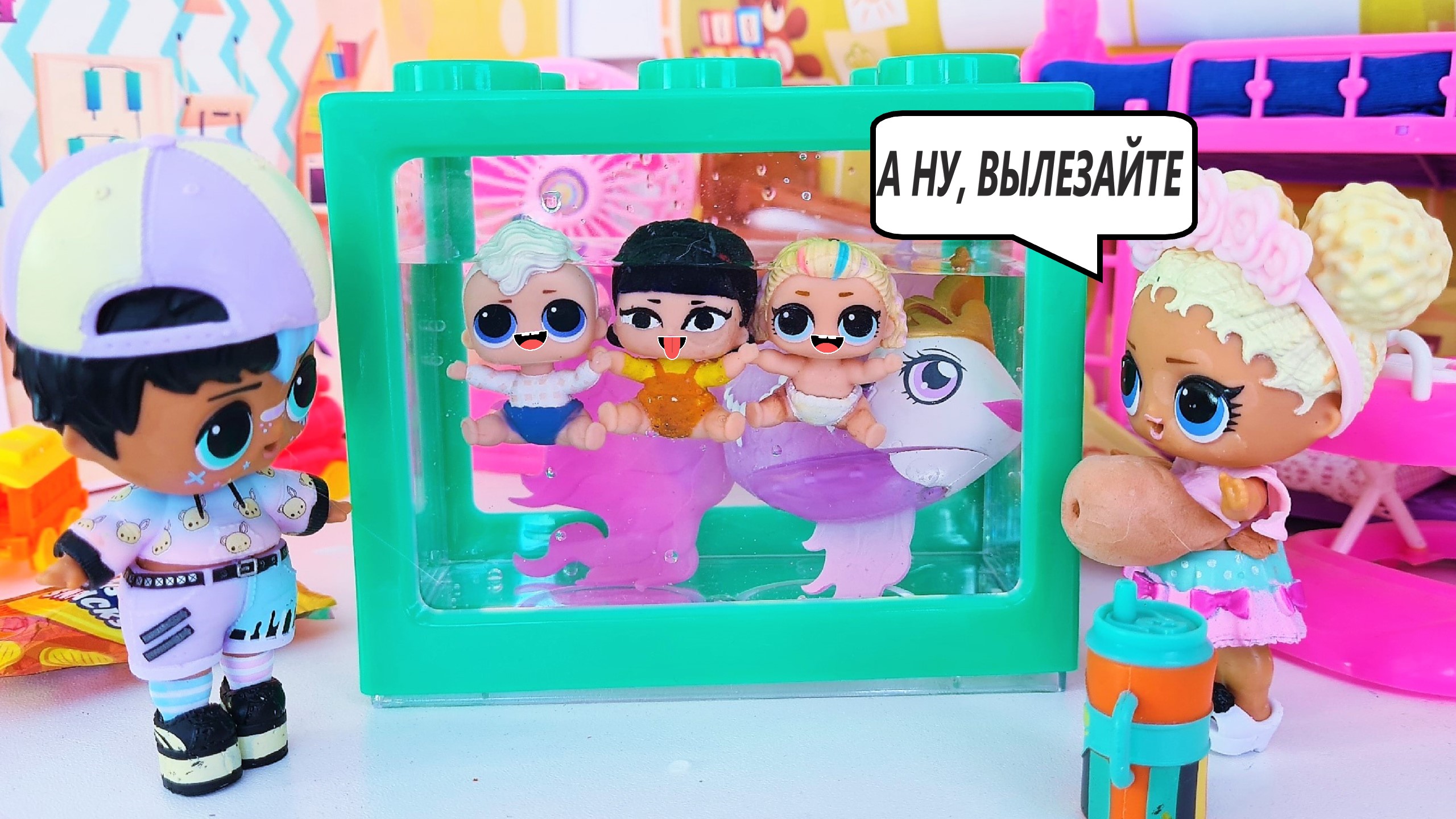 ЗАЛЕЗЛИ РЫБКУ ПОКОРМИТЬ??МАЛЫШИ ЛОЛ СЮРПРИЗ В ДЕТСКОМ САДИКЕ куклы смешные мультики Даринелка