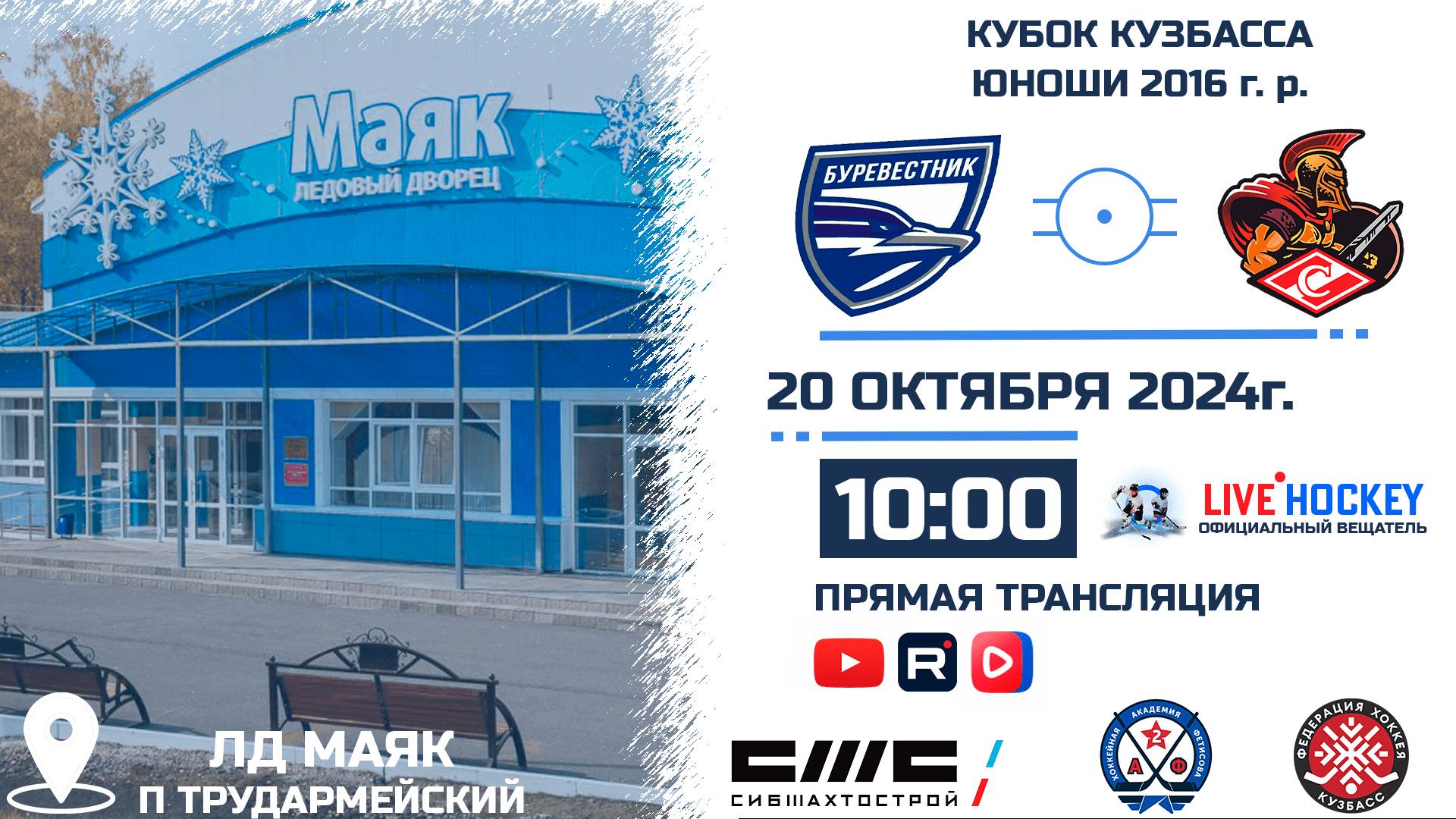 ПРЯМАЯ ТРАНСЛЯЦИЯ МАТЧА БУРЕВЕСТНИК 2016 (Томск)-СПАРТАК 2016 (Белово). 20.10.2024г. в 10.00 КУБОК КУЗБАССА. Сезон 2024-2025. Комментаторы: Графика: С графикой (таймер, табло). Стадион: ЛД МАЯК п. Трудармейский. ТРАНСЛЯЦИЯ НА YouTube: https://youtube.com/live/cPz1ydhg0k4?feature=share ТРАНСЛЯЦИЯ В СООБЩЕСТВЕ VK: