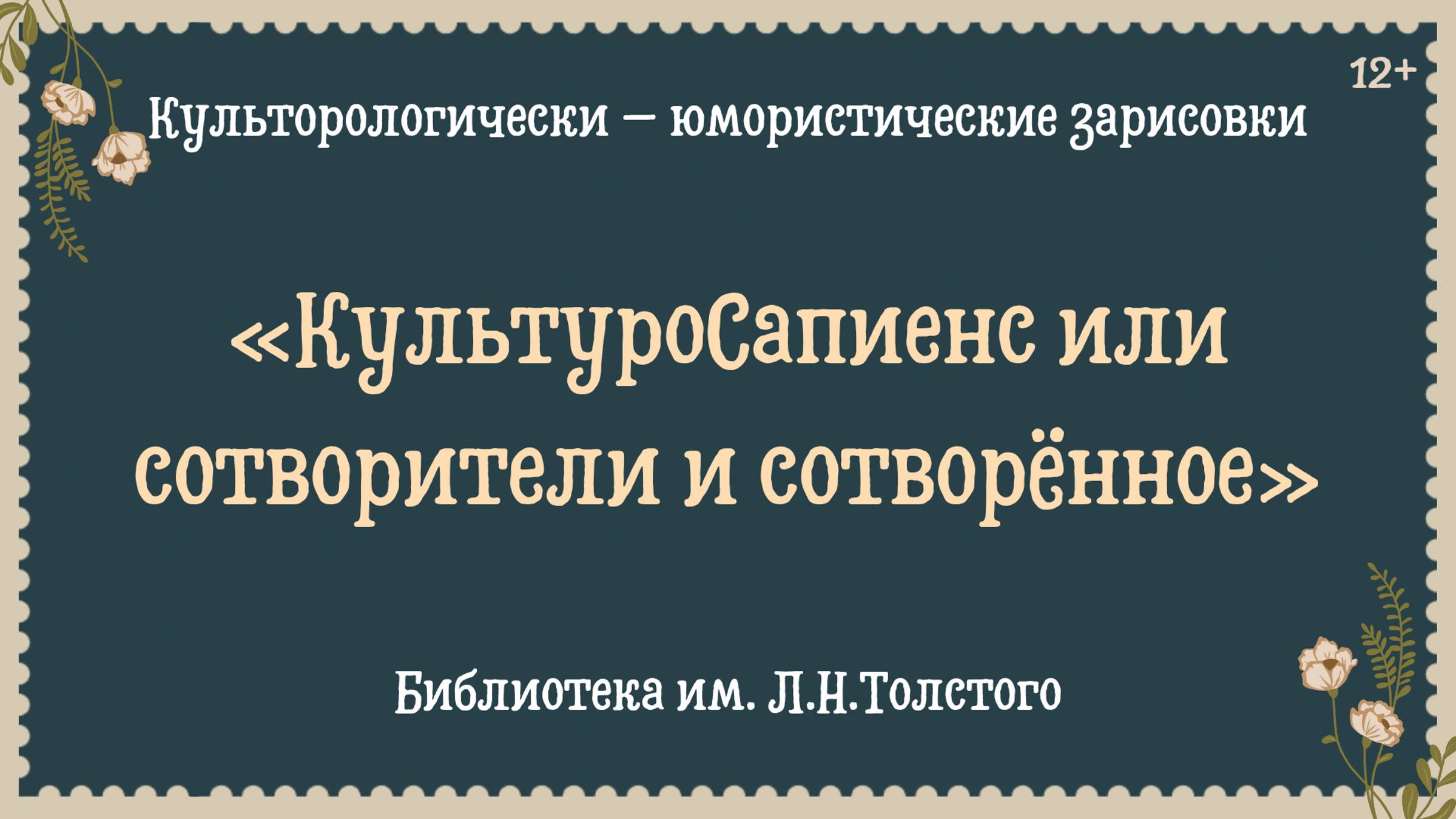 Культорологически – юмористические зарисовки «КультуроСапиенс или сотворители и сотворённое»
