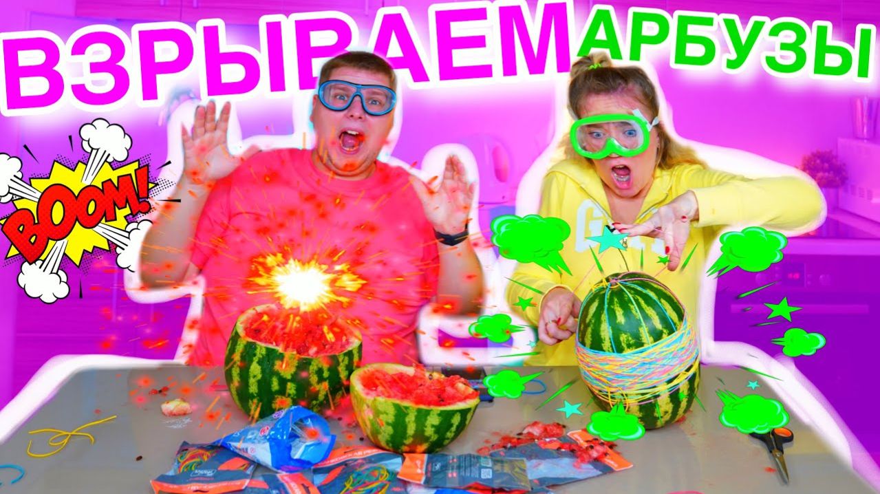 Кто быстрее ВЗОРВЕТ АРБУЗ резинками челлендж !