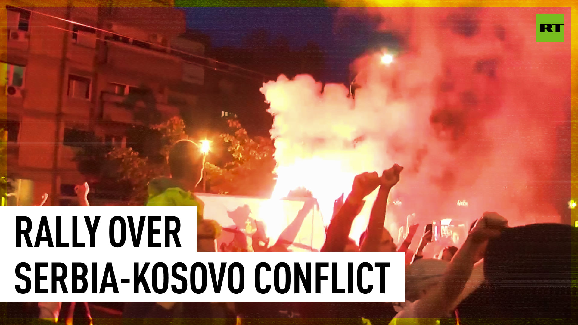 Red flares light up as hundreds of Serbs denounce Germany's role in Kosovo conflict
