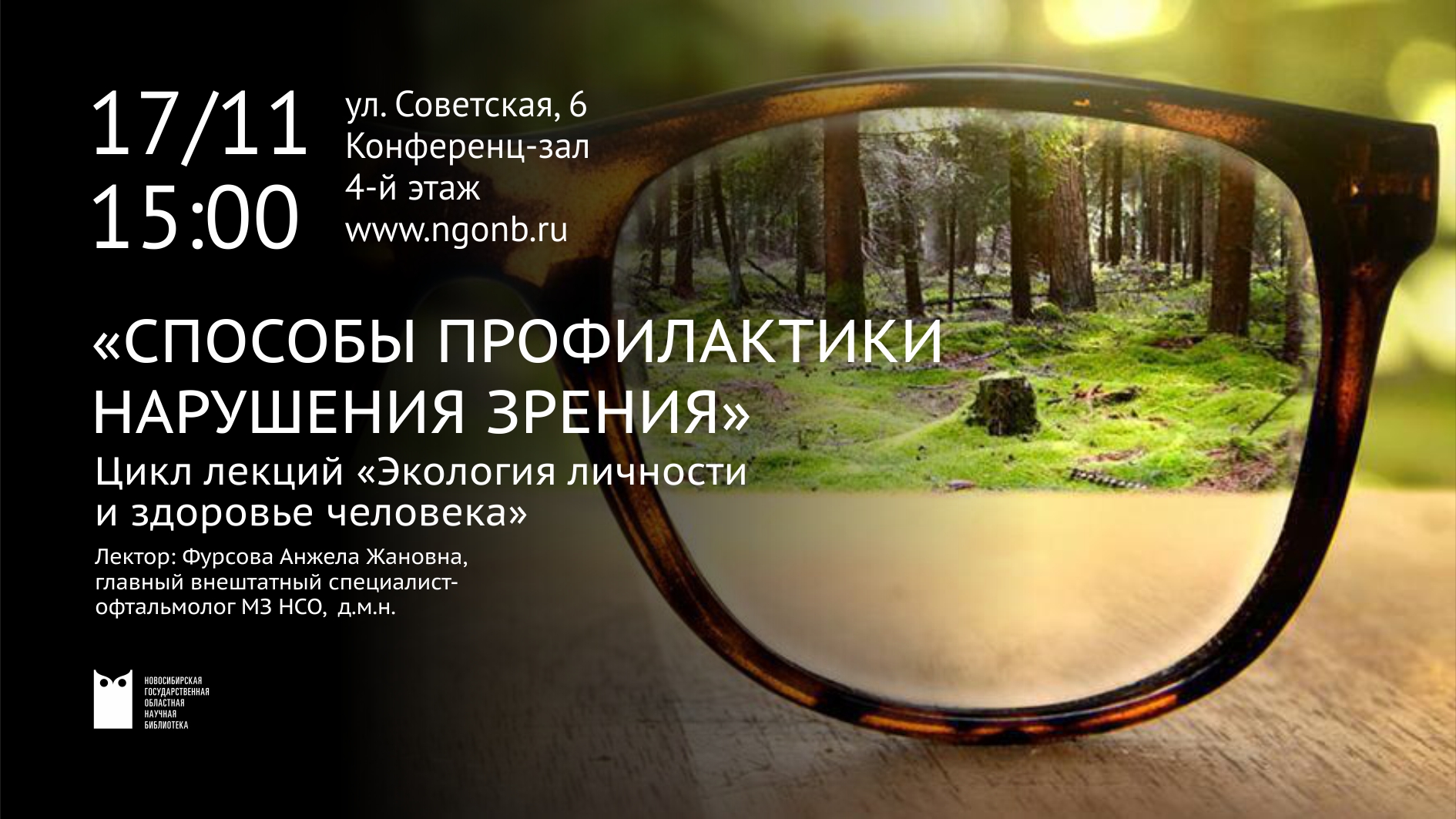 НГОНБ 2022-11-17 Глаза — один из основных органов восприятия человеком окружающей действительности. Глаза человека устроены очень сложно и нуждаются в защите от повреждений, а также в определенных условиях для нормального развития и работы. Профилактика нарушения зрения крайне важна, так как каждый человек с возрастом сталкивается с тем, что острота зрения начинает снижаться. У всех этот процесс происходит по-разному, но, так или иначе, зрение всегда страдает, если не от возраста, то от всевозможных заболеваний, внешних воздействий и нарушений. Как не допустить ухудшения здоровья глаз и сохранить хорошее зрение, расскажет Анжела Жановна Фурсова, главный внештатный специалист-офтальмолог МЗ НСО, д.м.н.
