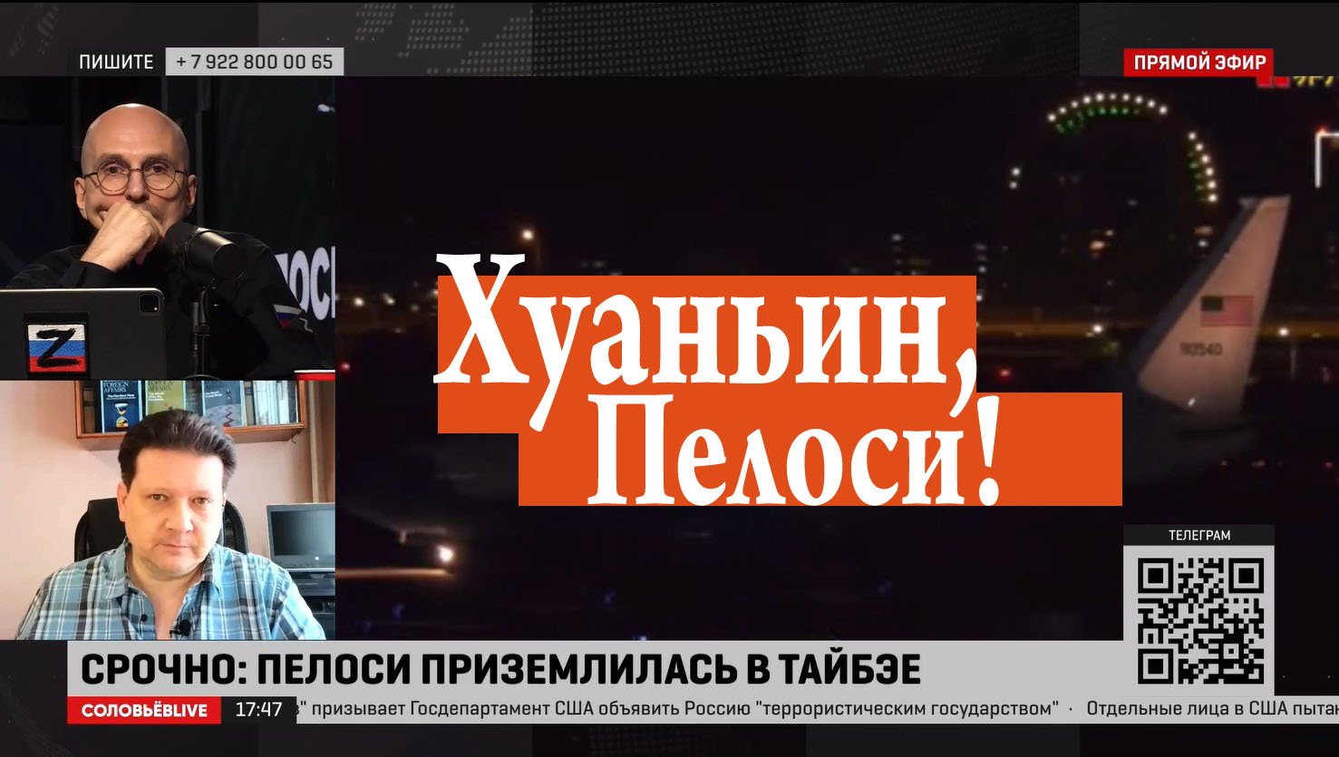 Политолог-международник Дмитрий Дробницкий в программе "Лабиринт Карнаухова" на канале "Соловьёв Live" 2.08.22 прокомментировал в прямом эфире "прорыв" Нэнси Пелоси на Тайвань. Подписывайтесь на Telegram-канал американиста Дмитрия Дробницкого "ДРОБНИЦКИЙ": https://t.me/DDrobnitski На его канал в Яндекс-мессенджере "Америка On Fire": https://yandex.ru/chat/#/join/c618a550-97cf-4189-afc7-e244adb0c1d3 И на его блог ВКонтакте: https://vk.com/dmitri0586 Способы просмотра канала «Соловьёв Live» см., набрав в адресной строке Soloviev.Live