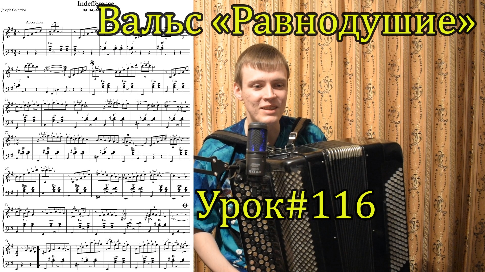 Сегодня на уроке я расскажу каким образом я играю Дж. Коломбо, T. Мурена Вальс-мюзет "Indifference" (Равнодушие). На уроке мы рассмотрим механическую задачу и сверим текст, поскольку в разных нотах есть опечатки. Обратите внимание, что ноты, которые я показываю не я набирал, я рассказываю свой сложившийся в голове вариант, который в некоторых местах отличается от нот. Профессионал всегда анализирует все ноты, всех исполнителей и находит свои пути, то есть огромная часть информации в голове у исполнителя, ноты это просто примерная схема исполнения. Динамику и агогику слушайте в концертном исполнении на моём видео: https://youtu.be/ZRdPSAaMfHQ Буду рад если мои рекомендации и находки помогут обучающимся осилить знаменитый вальс. В помощь каналу: Сбербанк 4817 7603 4376 0124 Юмани 410016072711345 Ссылка на оригинал видео: https://youtu.be/ZJzyzhX5f0c Группа ВК: https://vk.com/club155046743 Яндекс Дзен: zen.yandex.ru/vikingplay Youtube: https://www.youtube.com/c/АлександрКотовВикингмузыки