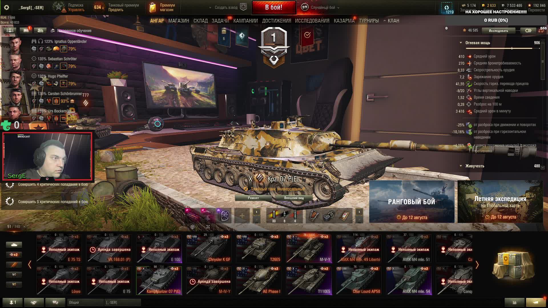 МИР ТАНКОВ KAMPFPANZER 07 P(E) СТРИМ ИЗ ПЕРМИ !!!