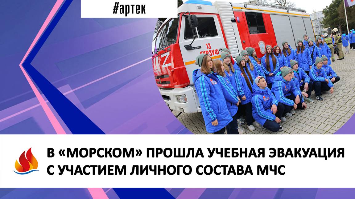 Каждую смену в детских лагерях «Артека» проводится учебная эвакуация. В мероприятии принимают участие представители администрация лагеря, педагогический состав, личный состав 13 пожарно-спасательной части. В детском лагере «Морской» в рамках учебной эвакуации из корпусов были выведены 296 детей и 40 взрослых.