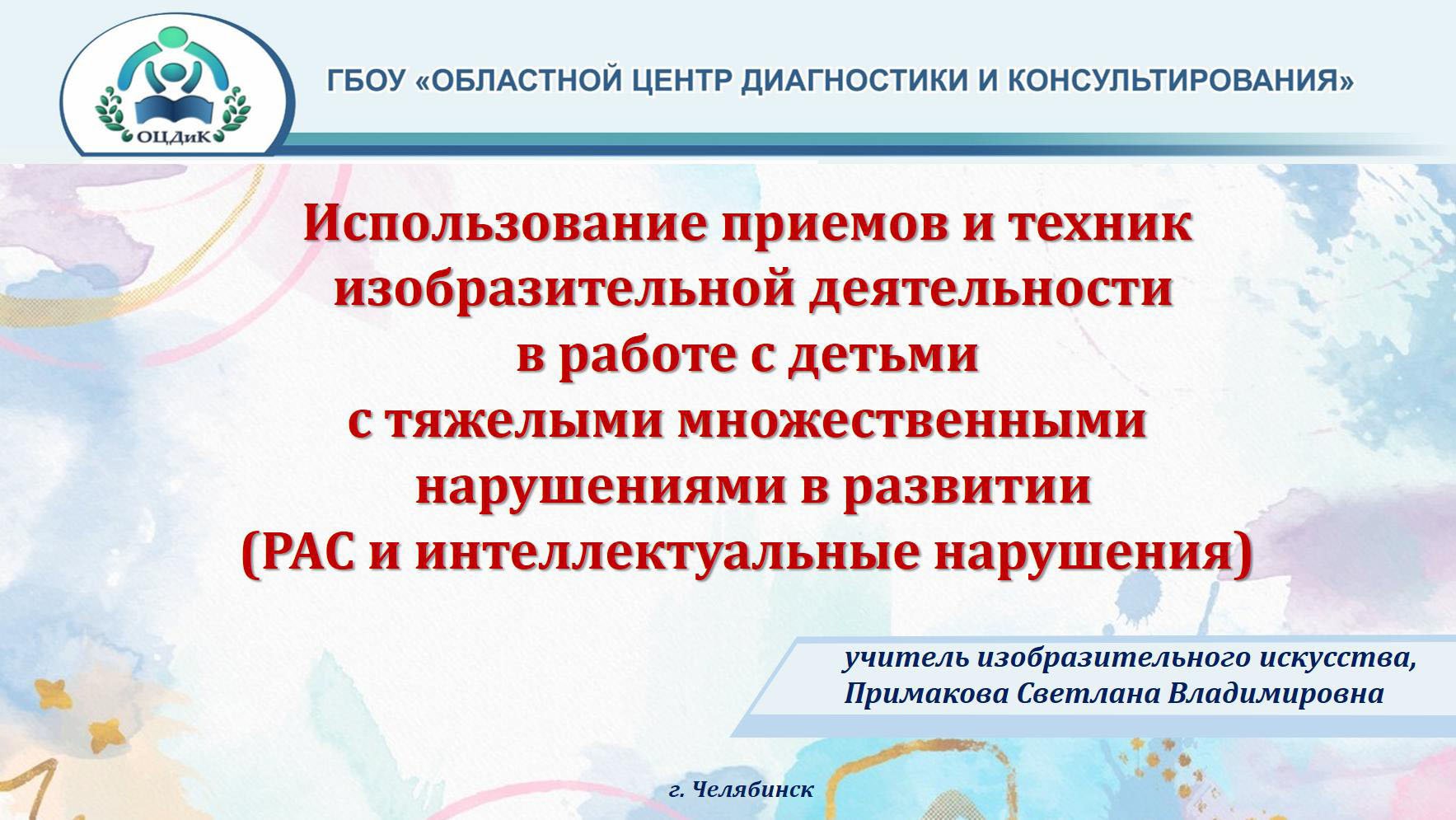Мастер-класс: «Использование приемов и техник изобразительной деятельности в работе с детьми с тяжелыми множественными нарушениями в развитии (РАС и интеллектуальные нарушениями) #ЛюдиКакЛюди
