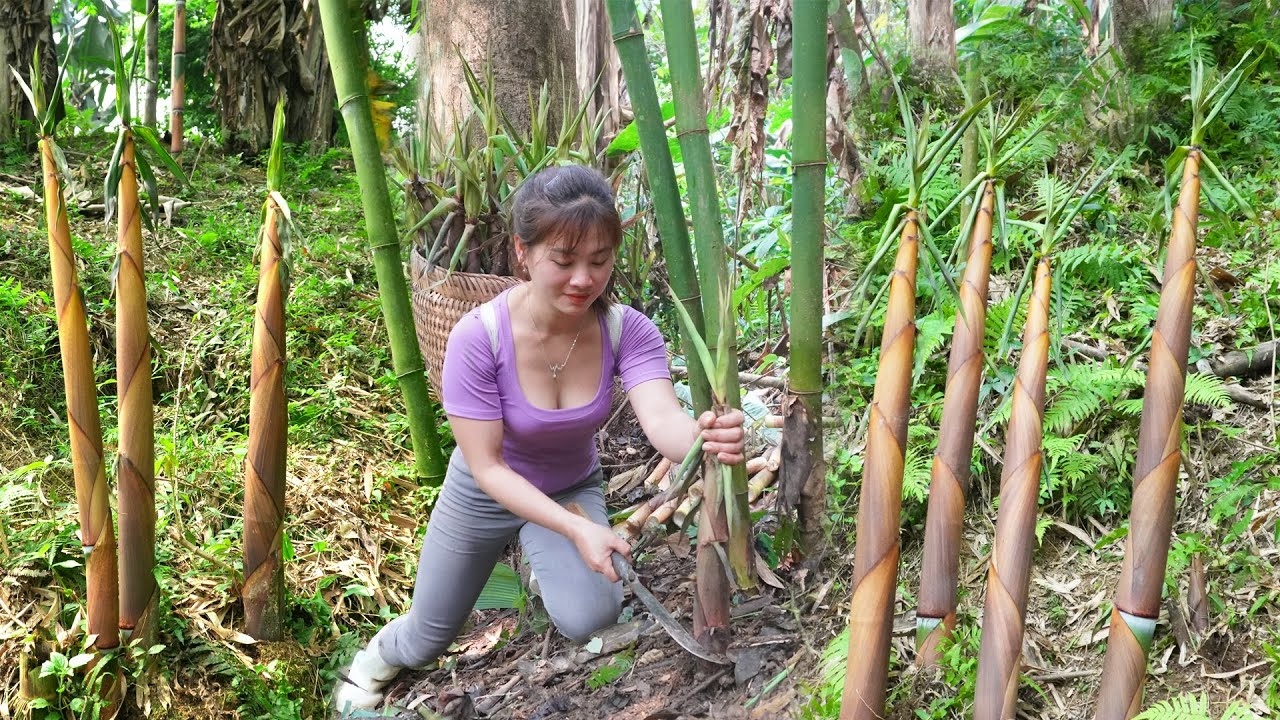 Собираю побеги бамбука и отвариваю, иду на рынок продавать. Ухаживаю за ананасовым садом. Нхат