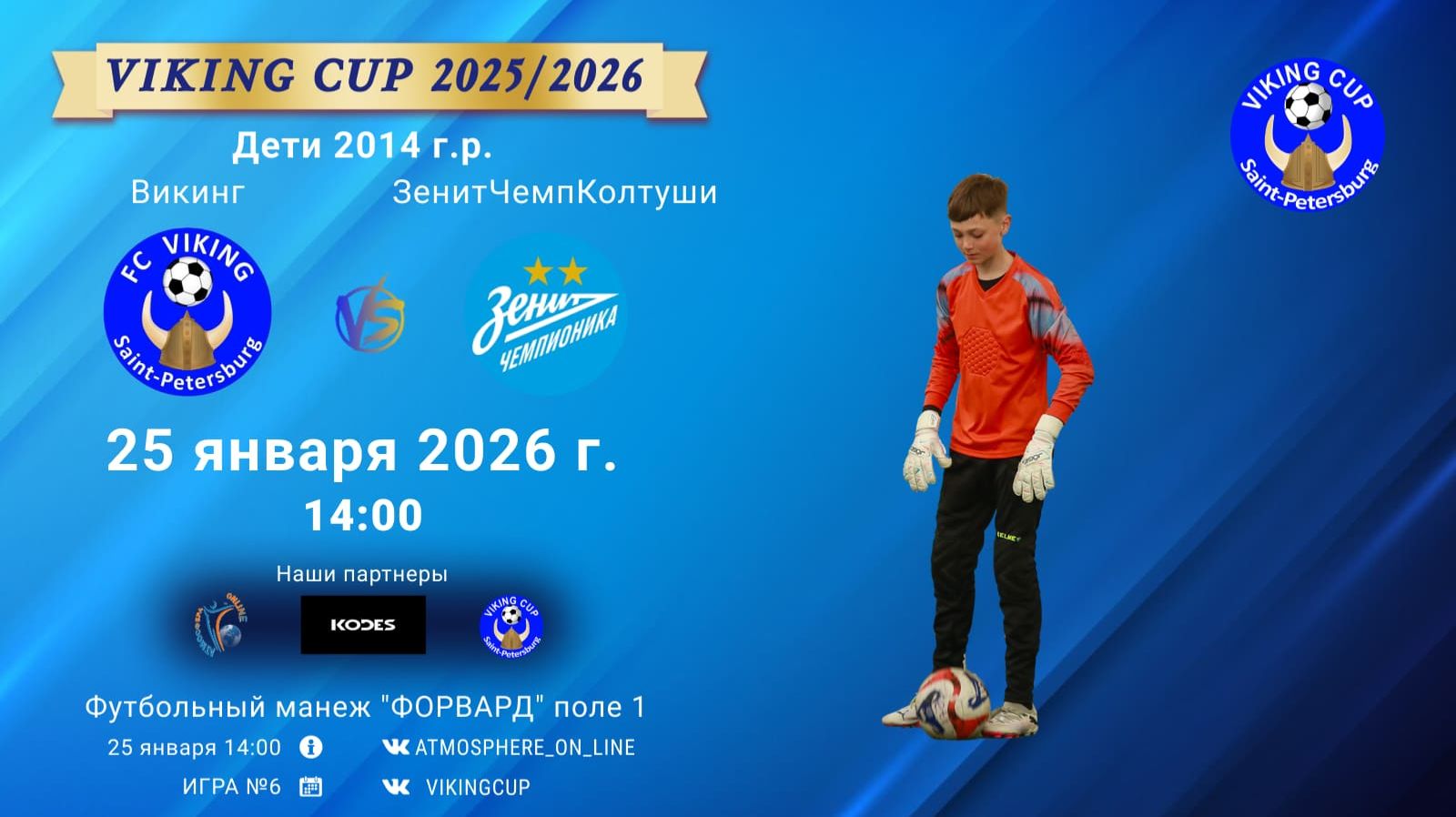VIKING CUP среди команд 2014 г.р. (U12), Поле 1 25 января 2026 САНКТ-ПЕТЕРБУРГ, ФЦ "Форвард" Викинг-ЗенитЧемпионикаКолтуши/VIKING CUP, Игра №6, 25-01-2026 14:00