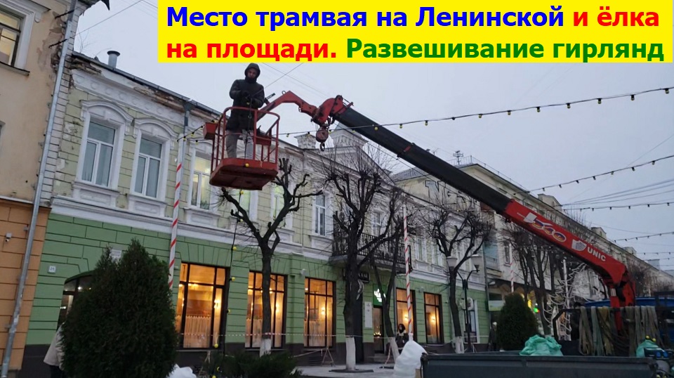 231120 Место трамвая улица Ленина Новогодняя ёлка торговые избушки гирлянды ТЦ Малиновая вода г Орёл