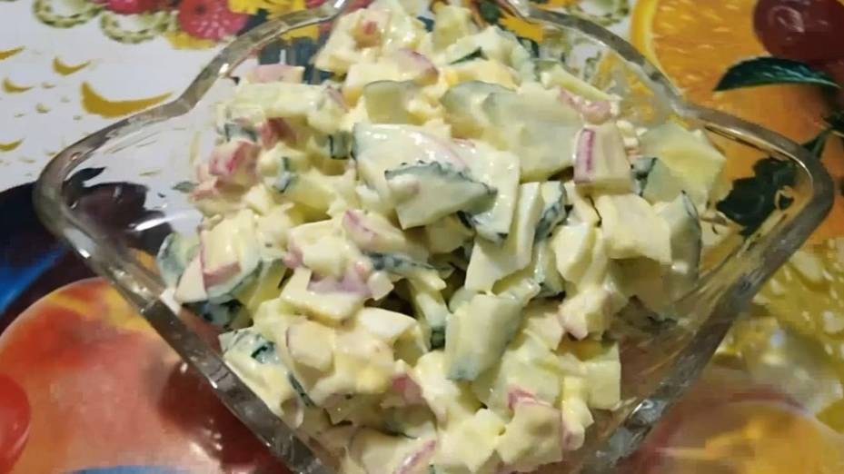 Салат Весенний - легкий и нежный со свежим огурцом и редиской, Салат за 5 минут Дорогие мои подписчики, предлагаю посмотреть следующие рецепты: БЛИНЫ, ОЛАДЬИ, СЫРНИКИ, ЗАПЕКАНКИ: https://rutube.ru/plst/701135 САЛАТЫ: https://rutube.ru/plst/701126 ВТОРЫЕ БЛЮДА: https://rutube.ru/plst/701159 ЗАКУСКИ И БУТЕРБРОДЫ: https://rutube.ru/plst/701132 СЛАДКАЯ ВЫПЕЧКА: https://rutube.ru/plst/701146 КОТЛЕТЫ, БЕЛЯШИ, ЧЕБУРЕКИ: https://rutube.ru/plst/701138 БЛЮДА ИЗ РЫБЫ: https://rutube.ru/plst/701140 НЕСЛАДКАЯ ВЫПЕЧКА: https://rutube.ru/plst/701150 Рецепт: - огурец - 3 шт. - редиска - 8-10 шт. - яйцо - 3 шт. - крабовые палочки - 100 гр. - майонез - 4 ст.ложки