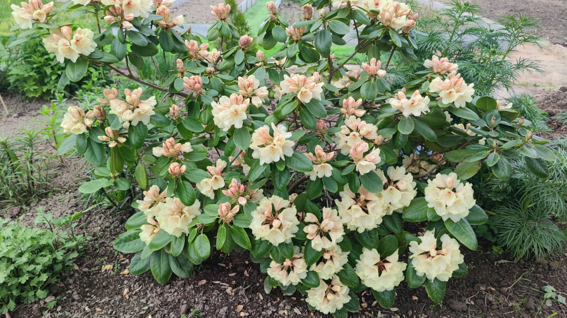 Цветёт рододендрон. Сад на 28 мая. Ленинградская область.