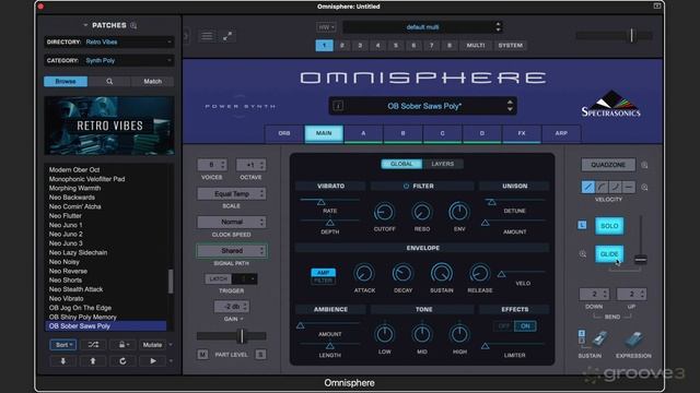 📁 Groove3 Omnisphere 3 Explained 🎬 12/31. Main Page Part Controls Part 2 Explore velocity curve options, solo/legato/glide modes, pitch bend range settings and sustain pedal operations. Timecodes: 00:00 - New Feature 01:01 - Setting Up Speed Curves 02:00 - Solo & Legato Mode 03:11 - Pitch Band & Sustain Settings 04:14 - Conclusion Playlists: https://rutube.ru/plst/900000 https://vkvideo.ru/playlist/-235081080_30 #Spectrasonics | #Omnisphere3 | #Groove3