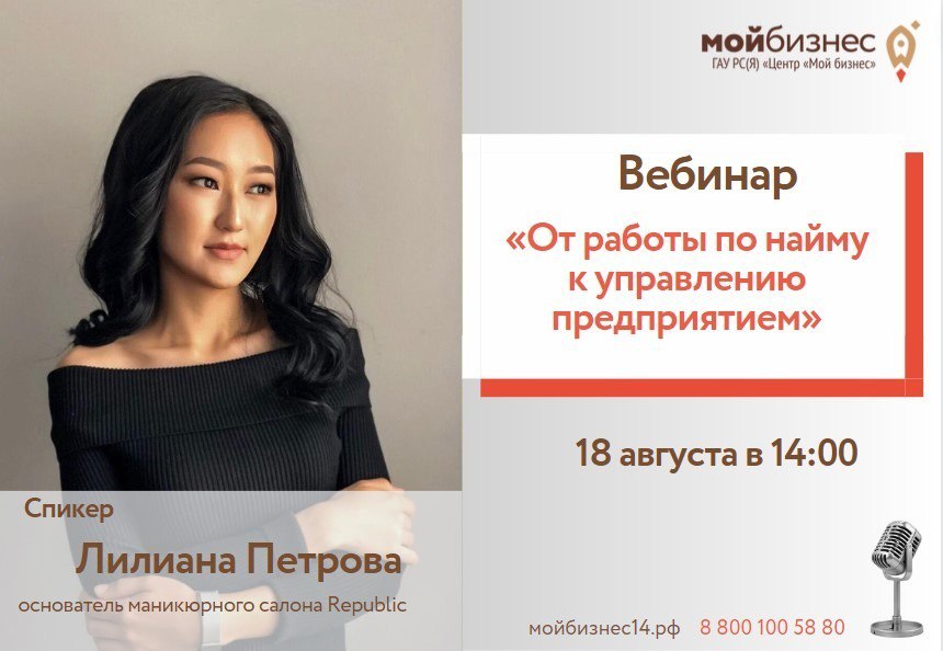 ? Как уйти из найма и открыть свой бизнес? ⭐️Спикер: Лилиана Петрова – основатель маникюрного салона Republic Лилиана Петрова прошла путь от нейл-мастера в найме до собственного салона в центре города. Наш спикер расскажет на своем примере, как грамотно построить свой бизнес. На этом вебинаре она поделиться личным опытом, даст советы и расскажет: ? Какие принципы помогают в управлении бизнесом ? Вдохновение и мотивация руководителя ? Как найти постоянную клиентскую базу ? Как решиться открыть свой бизнес с нуля ? Как выстраивать стратегию ? Работа с персоналом ? Финансы в сфере красоты ? Маркетинг