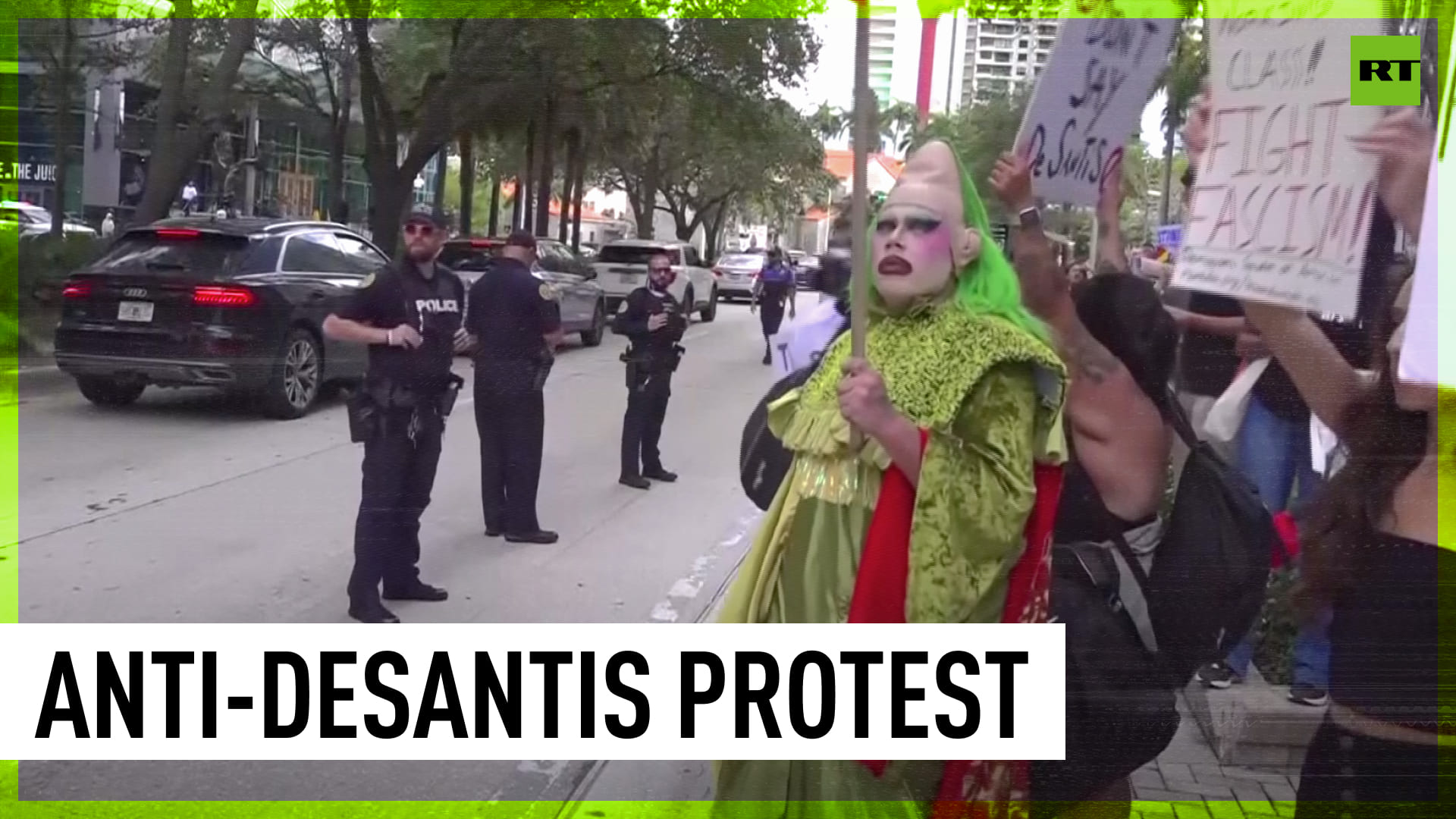 Protesters took to the streets of Miami following Florida Gov. Ron DeSantis’ 2024 presidential race campaign launch. ------------------------------------------------------------------------------------- Freedom over censorship, truth over narrative. Follow us on Facebook: https://www.facebook.com/RTnews Follow us on Telegram: https://t.me/rtnews Follow us on Twitter: https://twitter.com/RT_com