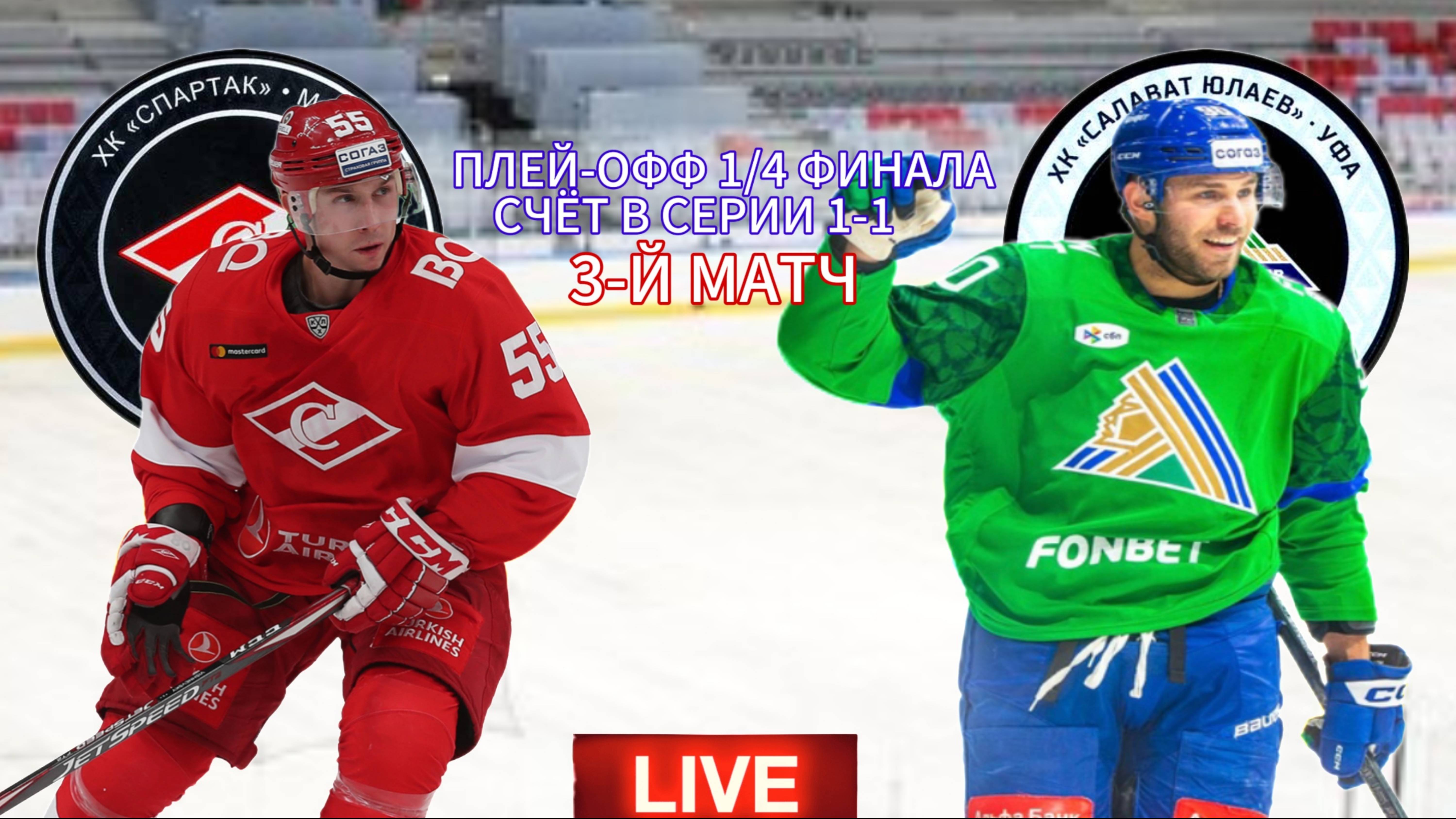 ХОККЕЙ КХЛ ПЛЕЙ-ОФФ 1/4 ФИНАЛА. СПАРТАК - САЛАВАТ ЮЛАЕВ. ПРЯМАЯ ТРАНСЛЯЦИЯ