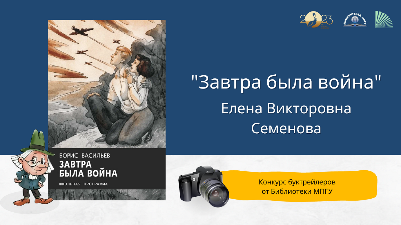 В мае 2023 года, в рамках Года педагога и наставника, Библиотека МПГУ проводит конкурс буктрейлеров "Наш друг Пишичитай: педагоги и наставники на страницах любимых книг". Елена Викторовна Семенова рассказывает о книге Бориса Васильева "Завтра была война".