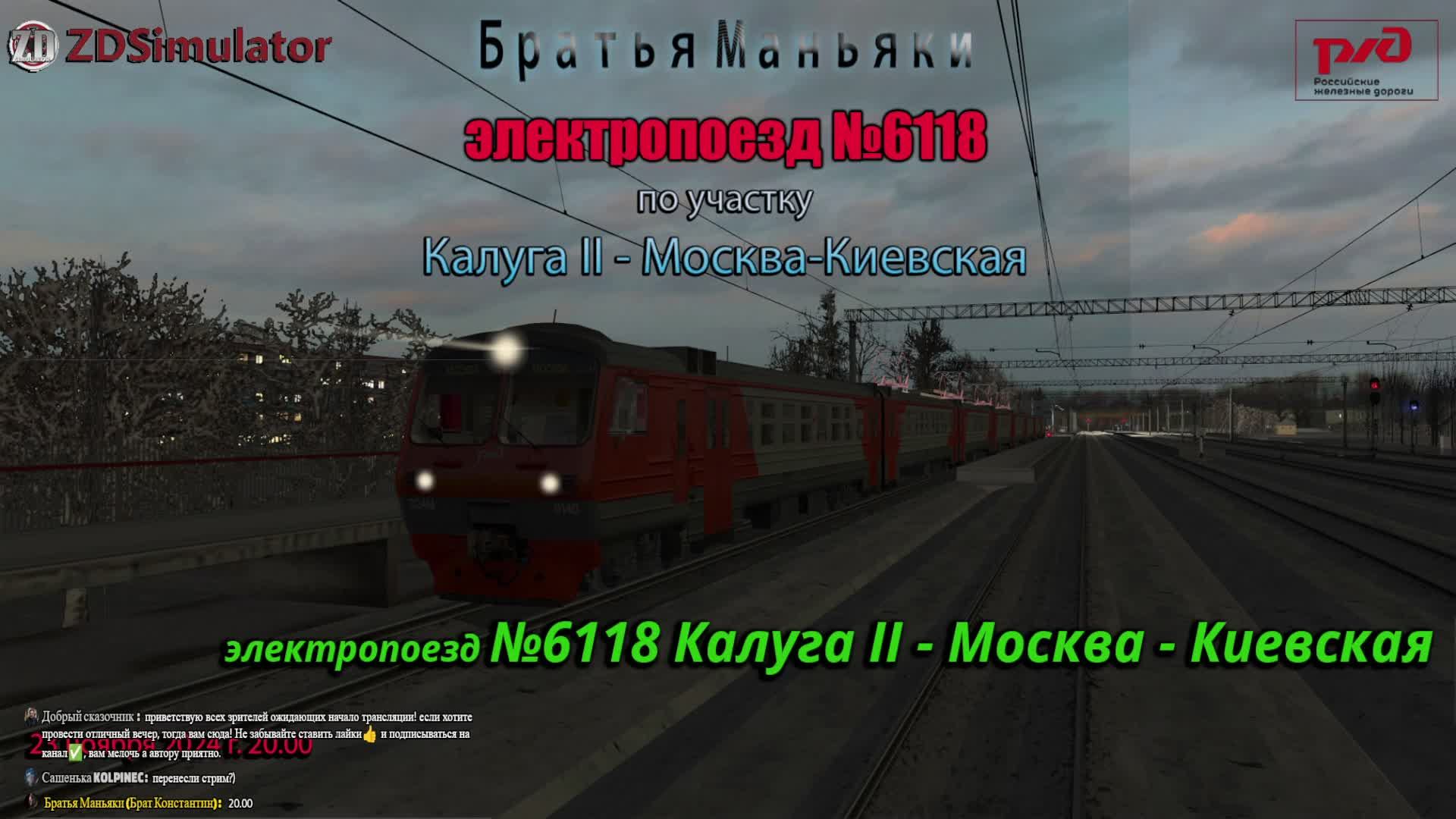 ZDSimulator - электропоезд №6118 - по участку Калуга II - Москва Киевская ========================================================================== Ссылка на донат-поддержку братьев: https://www.donationalerts.ru/r/zloykhrush ========================================================================== Мемасики на стрим: https://memealerts.com/64f424fbc986758d520b4ef6 ========================================================================== Официальный сайт : https://zdsimulator.com/ форум ZDSimulator: https://forum.zdsimulator.com/ Официальный канал Братья Маньяки в Телеграмм: https://t.me/manjac_broths зеркало на ютьюбе: