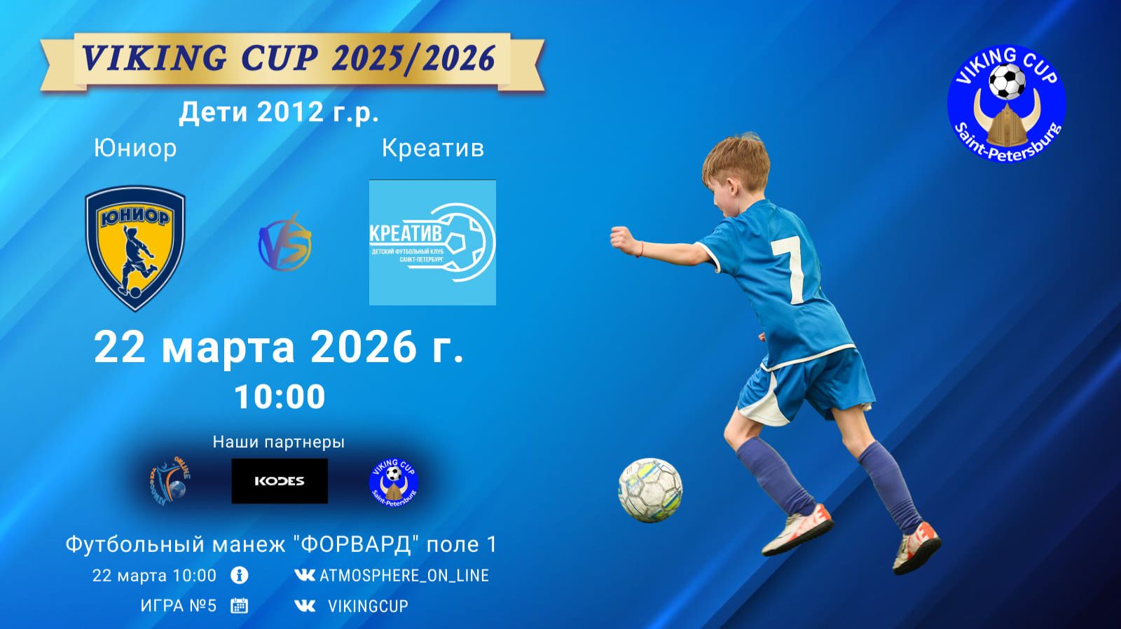 VIKING CUP среди команд 2012 г.р. (U14), Поле 1 22 марта 2026 САНКТ-ПЕТЕРБУРГ, ФЦ "Форвард" Юниор-Креатив/VIKING CUP, Игра №5, 22-03-2026 10:00