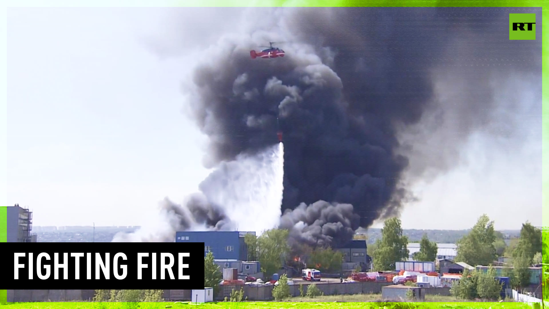Helicopters were deployed to the town of Dzerzhinsky near Moscow to extinguish a massive fire that erupted at a warehouse housing automobile tires. -------------------------------------------------------------------------------------------------- Freedom over censorship, truth over narrative. Follow us on Facebook: https://www.facebook.com/RTnews Follow us on Telegram: t.me/rtnews Follow us on Twitter: https://twitter.com/RT_com
