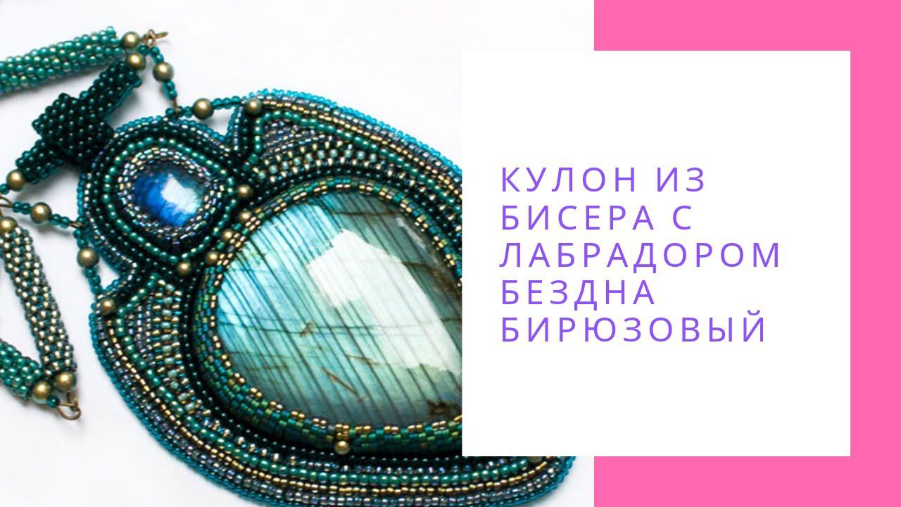 Кулон из бисера с лабрадором Бездна бирюзовый зеленый крупный кулон NataliaLuzik