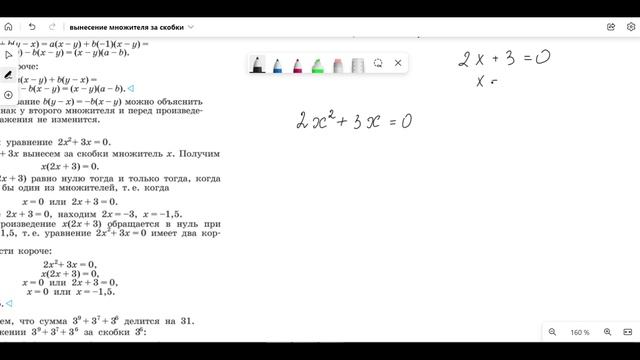 Алгебра 7 класс 00:00:00 Вынесение общего множителя за скобки 00:01:30 Пример 1 00:12:18 Пример 2 00:19:20 Пример 3 00:22:05 Пример 4 00:28:13 Пример 5 00:31:25 № 655 г, д, е 00:35:25 № 656 в, г 00:38:34 № 657 а, б, в, г