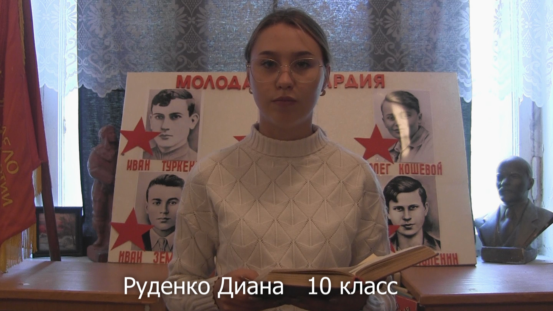 Международная акция "ЧитаемМолодуюГвардиюВместе", посвящённая 80-летию образования подпольной антифашистской организации "Молодая гвардия". Участница акции Руденко Диана 10 класс Петровская школа № 36