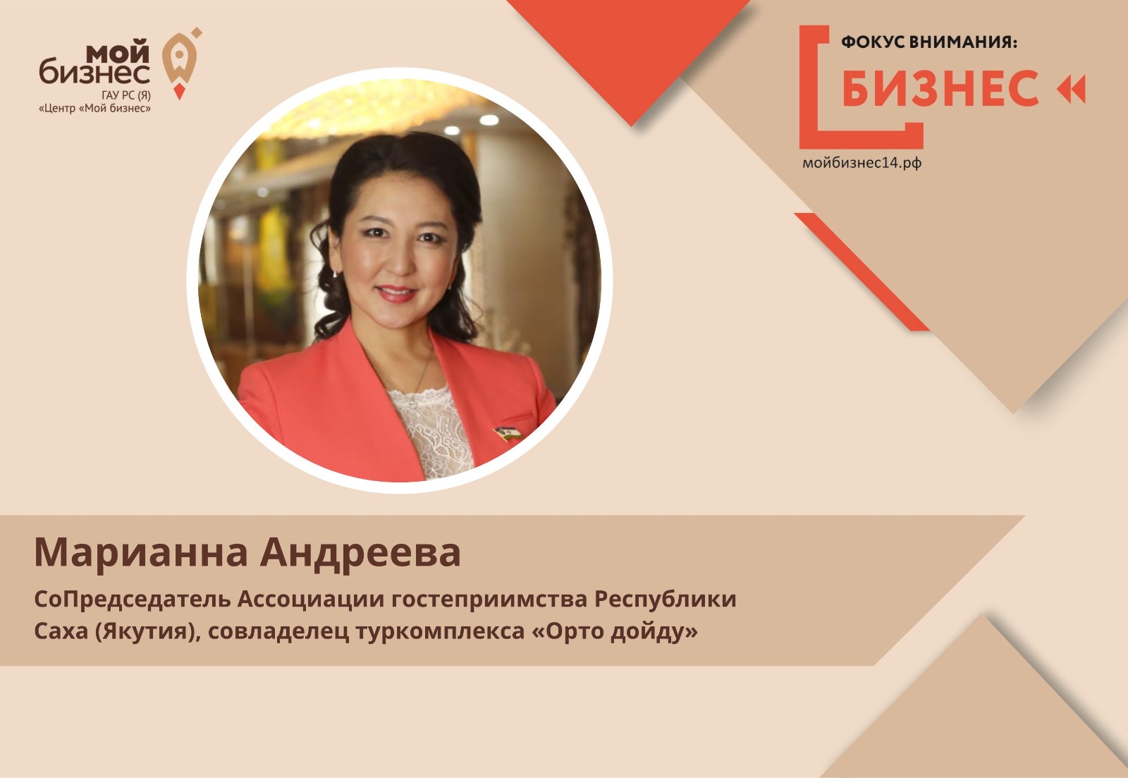 Марианна Андреева, Сопредседатель Ассоциации гостеприимства Республики Саха (Якутия), совладелец туркомплекса «Орто Дойду».