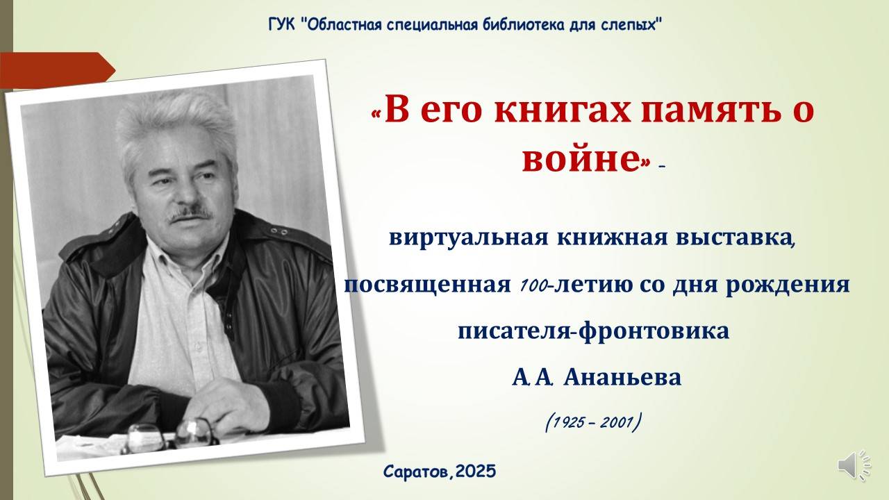 Виртуальная книжная выставка, посвященная 100-летию со дня рождения писателя-фронтовика А.А. Ананьева (1925-2001)