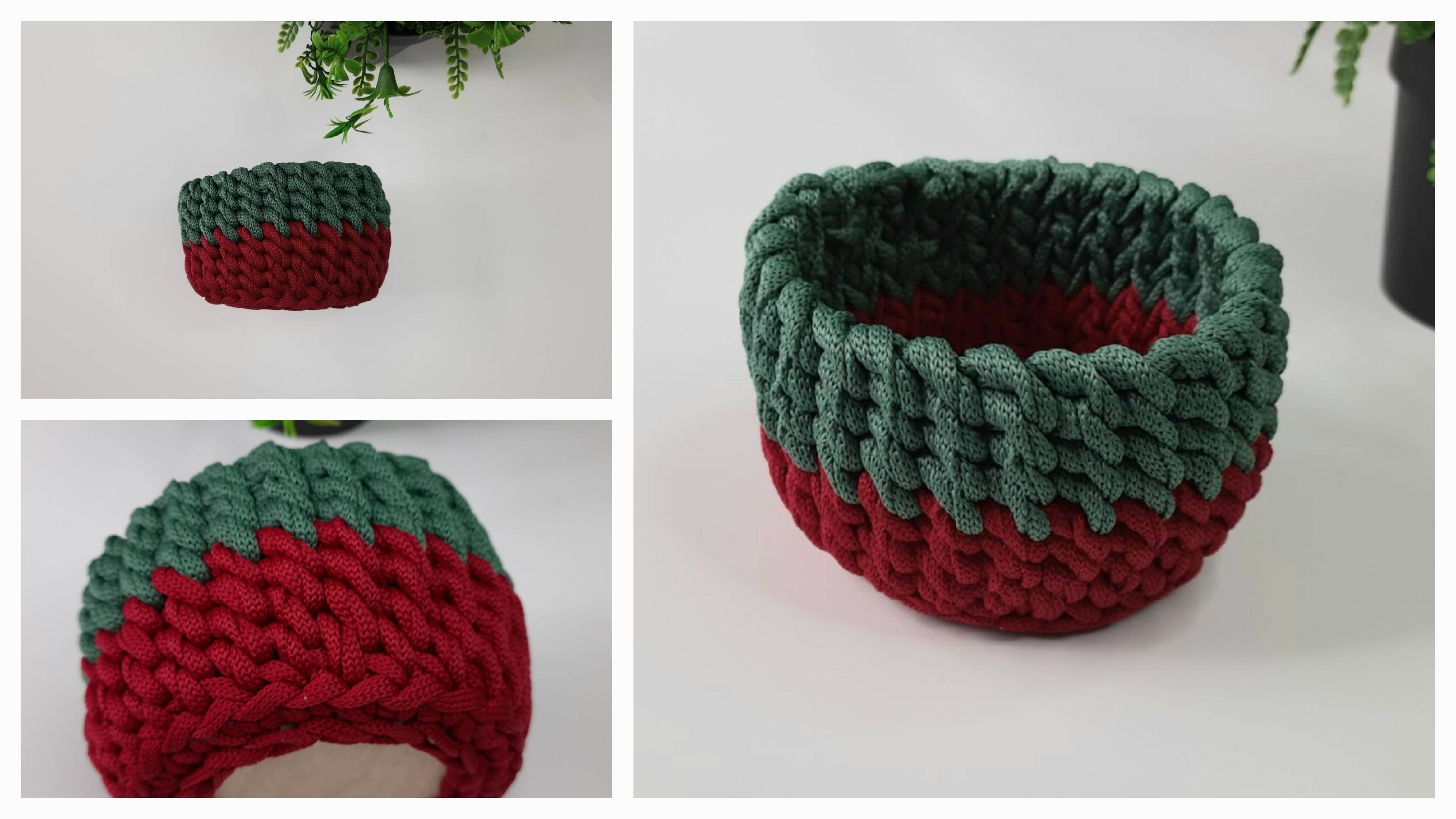 Корзинка для мелочей вязаная крючком плотным рельефным узором из полиэфирного шнура.МК. Мастер класс